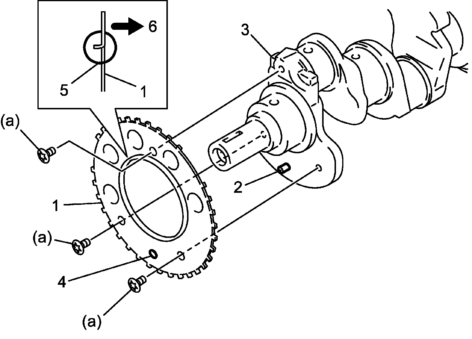^ Align spring pin hole (4) on sensor plate with spring pin on crankshaft.