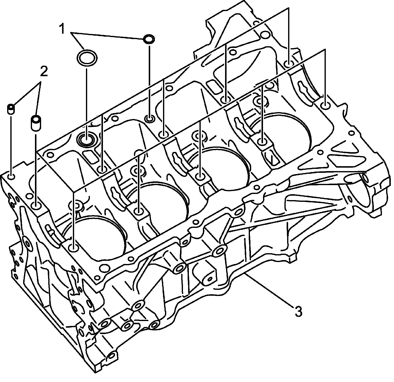 4) Install dowel pins (2) to cylinder block (3).