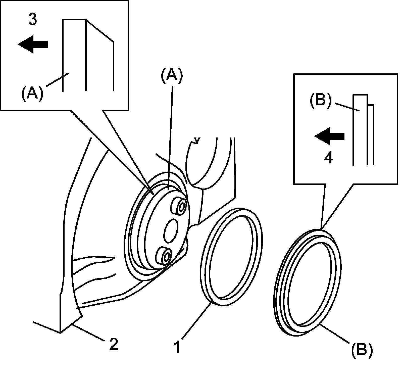 b) Press bearing end (3) until it is firmly seated on the cylinder block or lower crankcase.