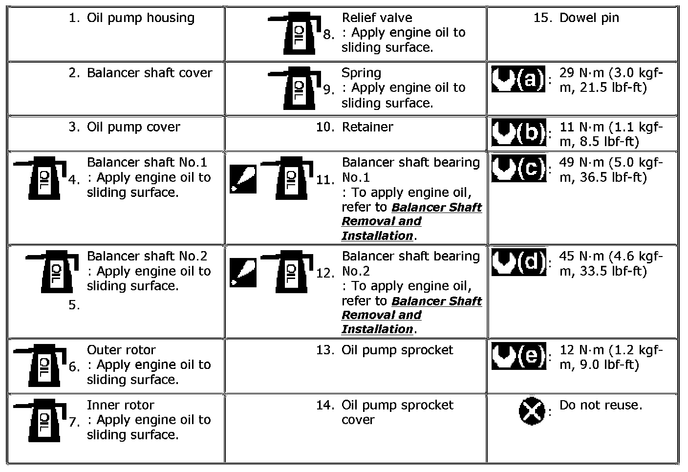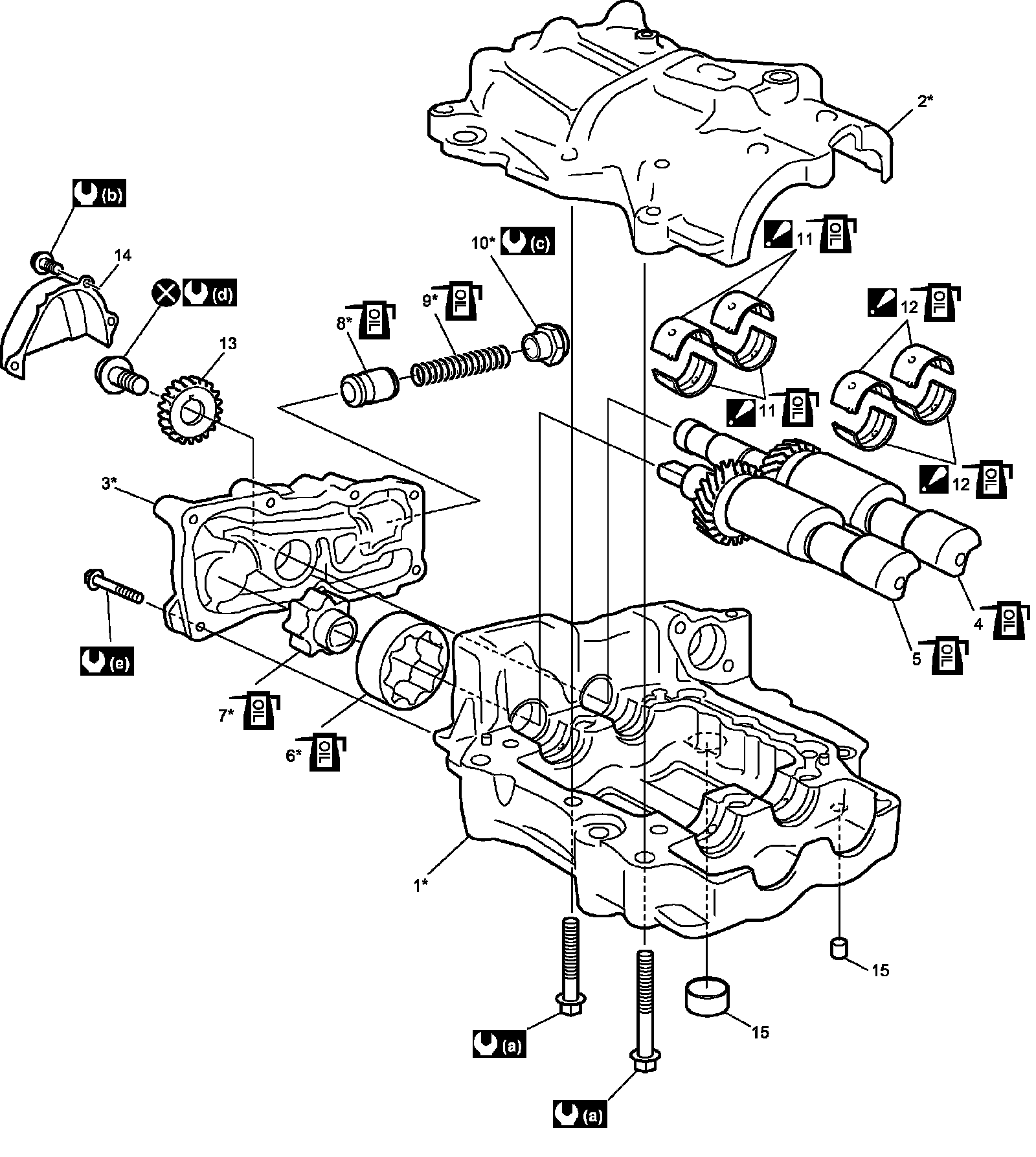 The parts with * (asterisk) are not available as replacement parts individually. If any detect is found on those parts, replace oil pump assembly.