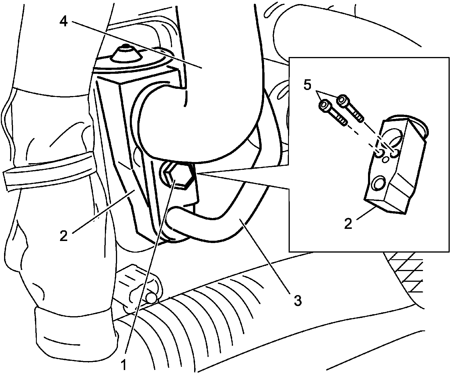 3. Remove expansion valve bolts (5), and then remove expansion valve.