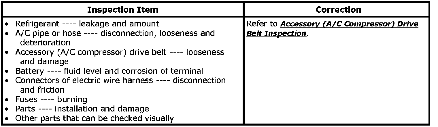 Visually check the following parts and systems: