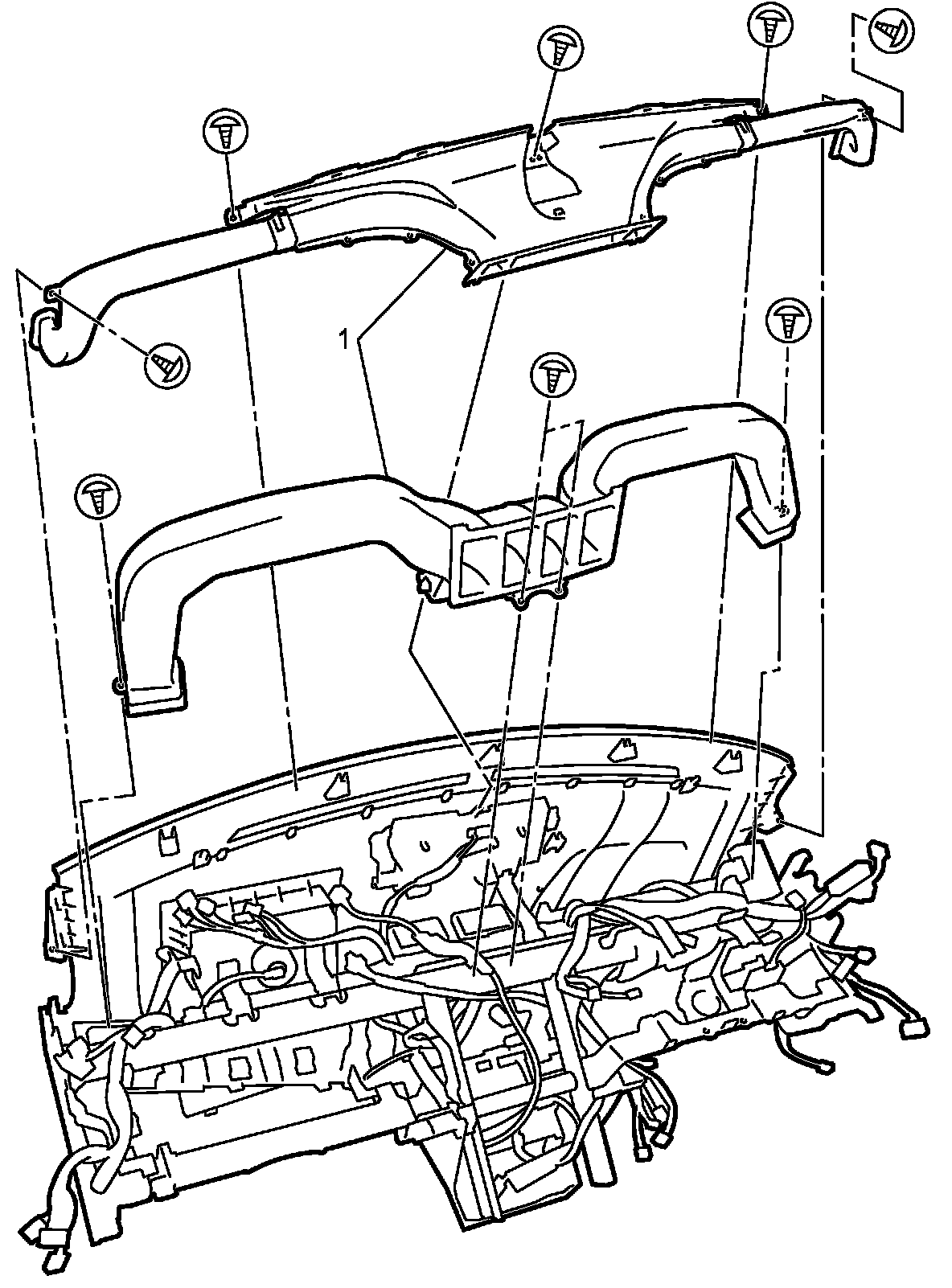 8. Remove screws and remove instrument panel main lower panel (1).