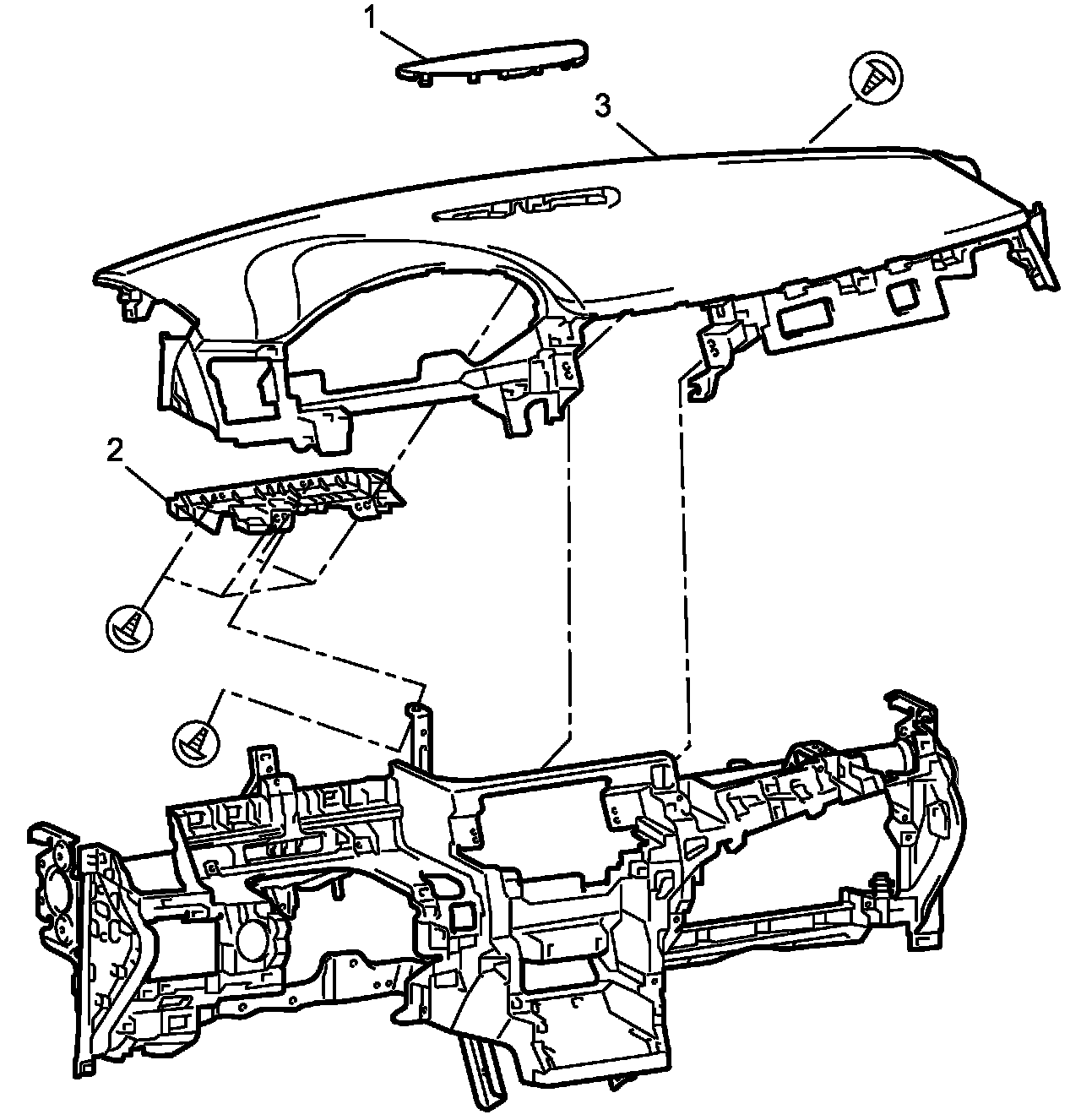 - Passenger side instrument panel garnish (3)