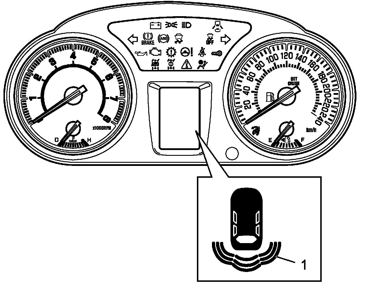 Parking sensor system has warning function to notify driver of error occurring in the system by flashing parking sensor symbol (1) on information display.