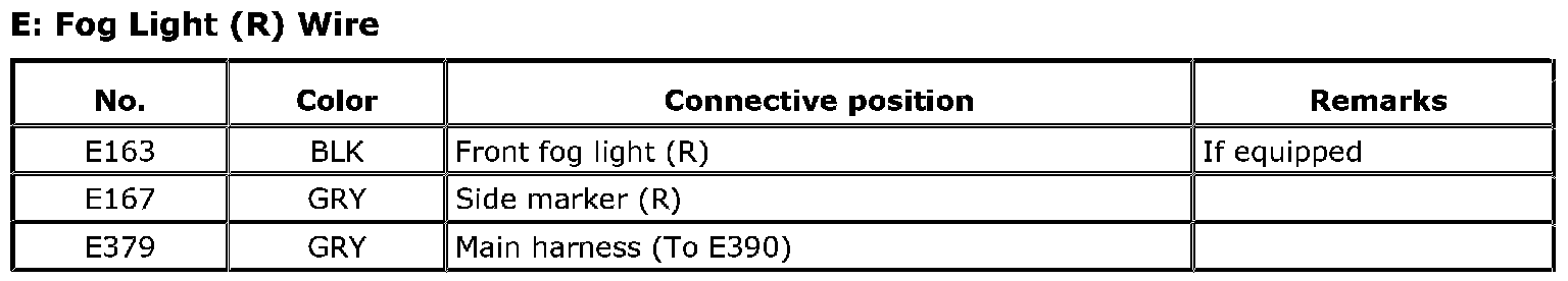 Engine CompartmentE: Main Harness, Fog Light Wire