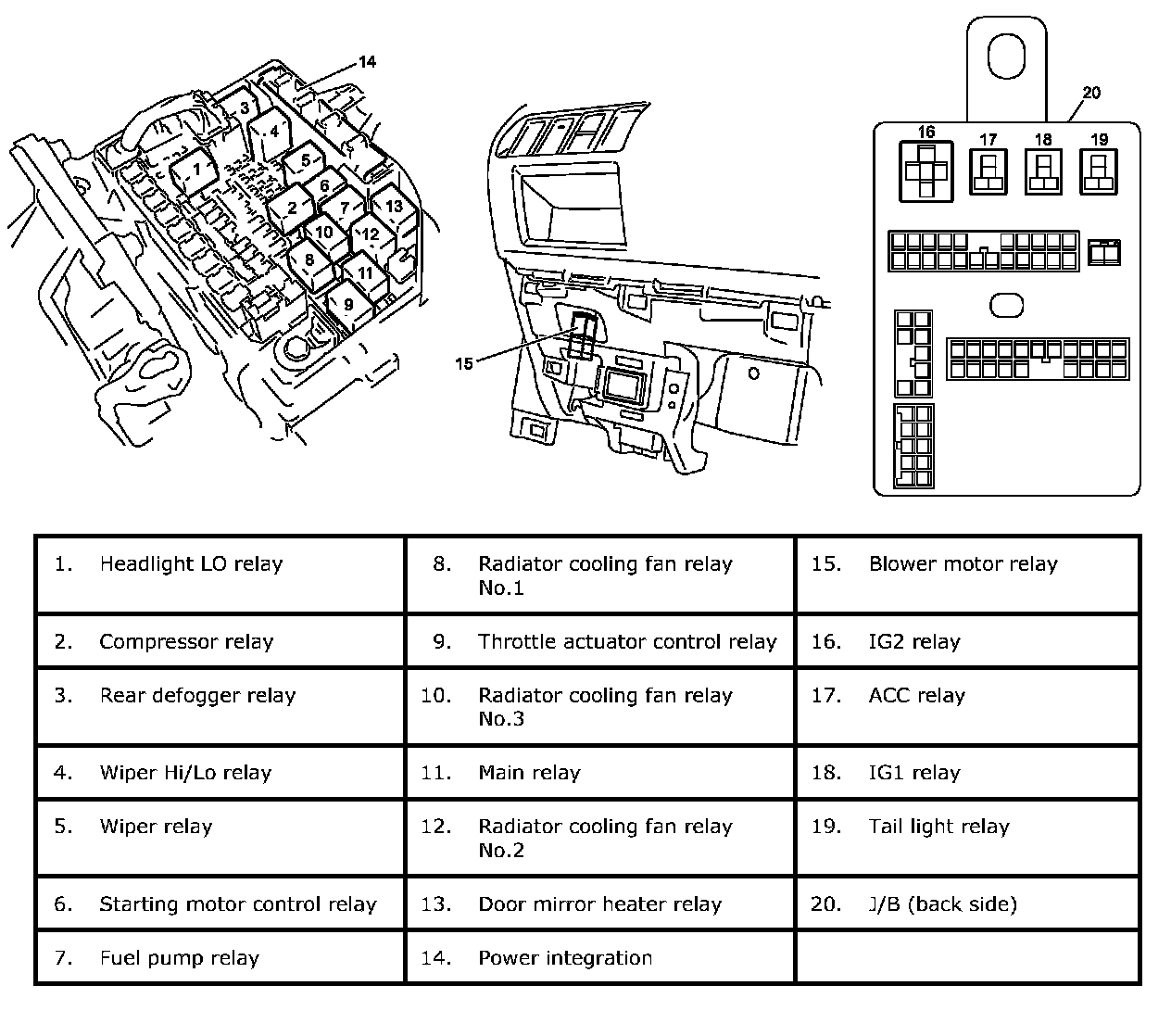 Other than Wiper Hi/Lo relay, wiper relay and radiator cooling fan relay No.2
