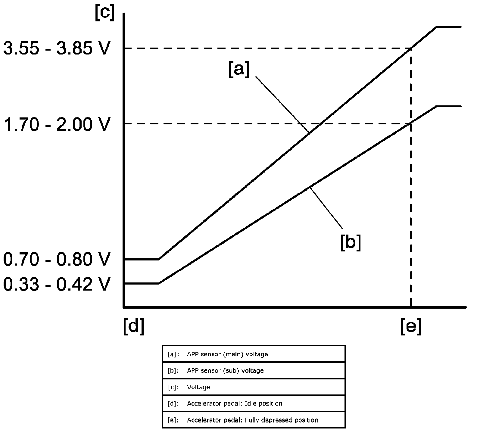 c. Check that voltage varies depending on accelerator opening angle as the following graph.