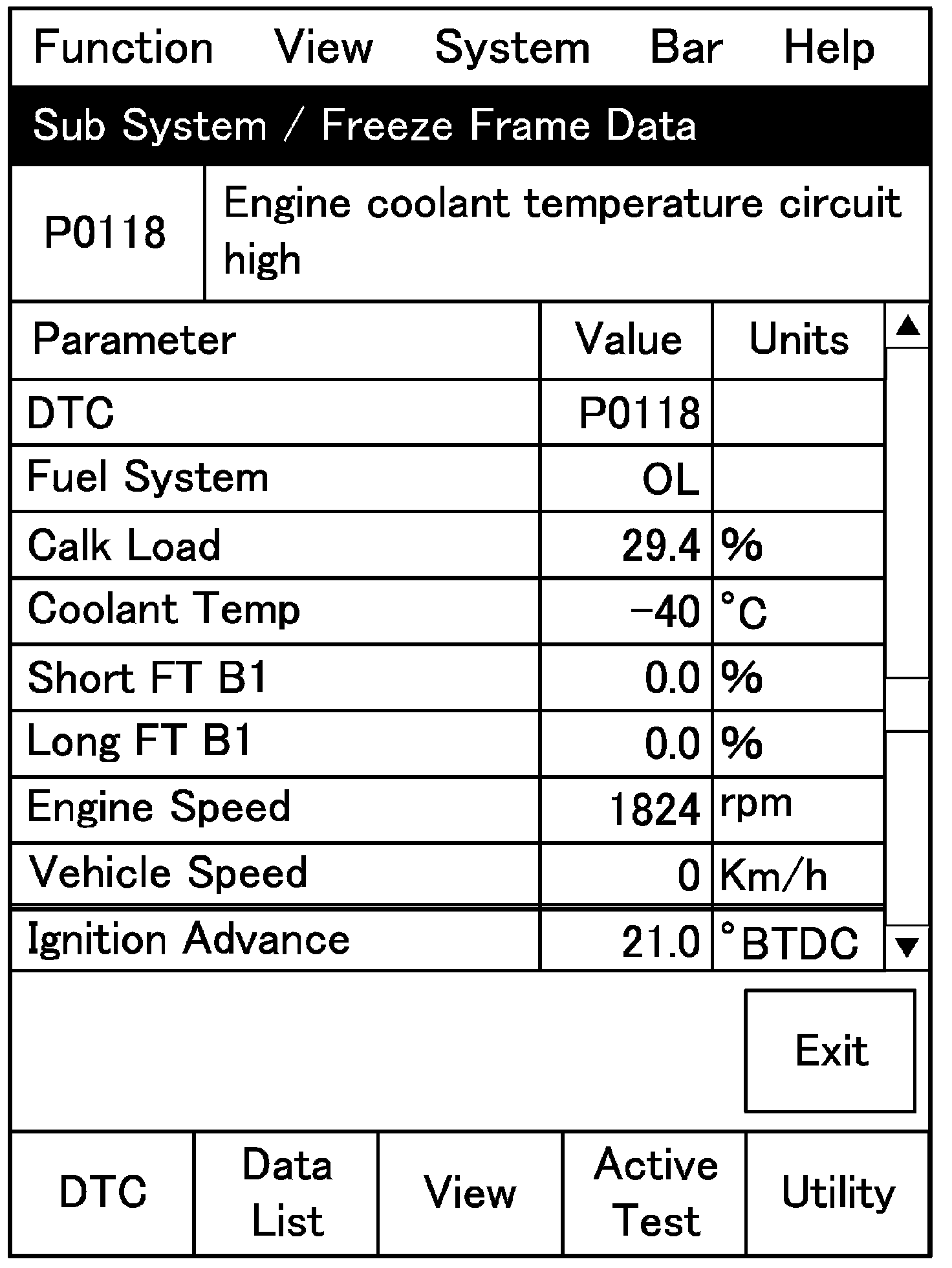 - When a malfunction is detected, engine and driving conditions at the moment the malfunction was detected are stored in ECM memory as freeze frame data. For the details, refer to description on Freeze Frame Data.