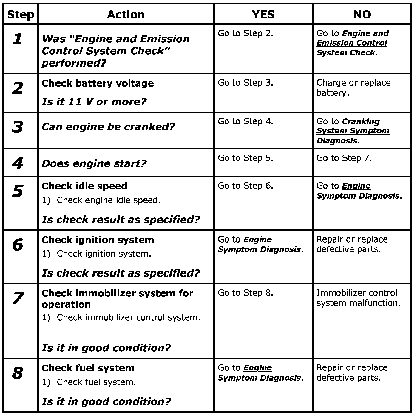 Perform troubleshooting referring to the following points when no DTC is detected in ECM and no abnormality is found in Visual Inspection.