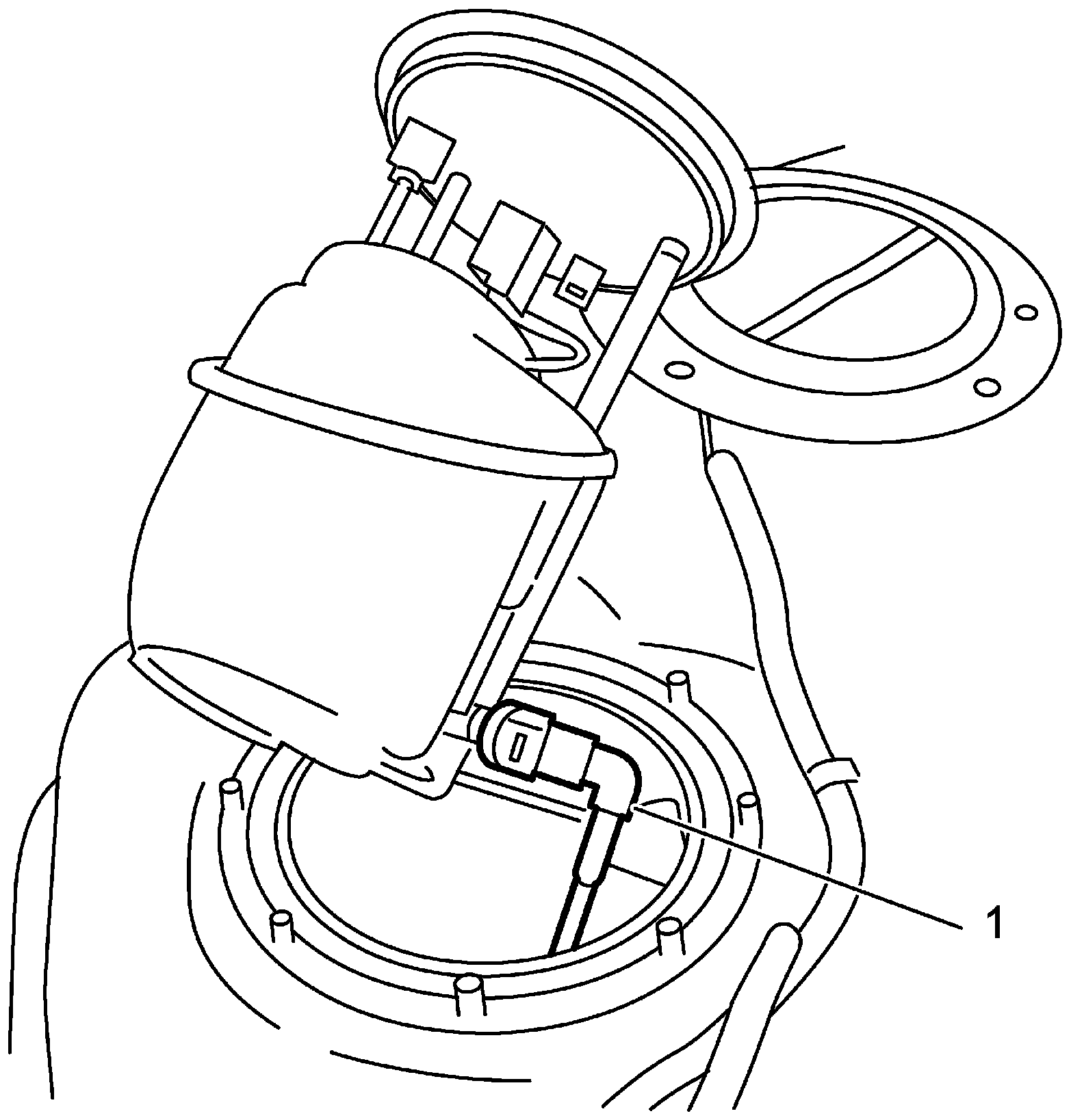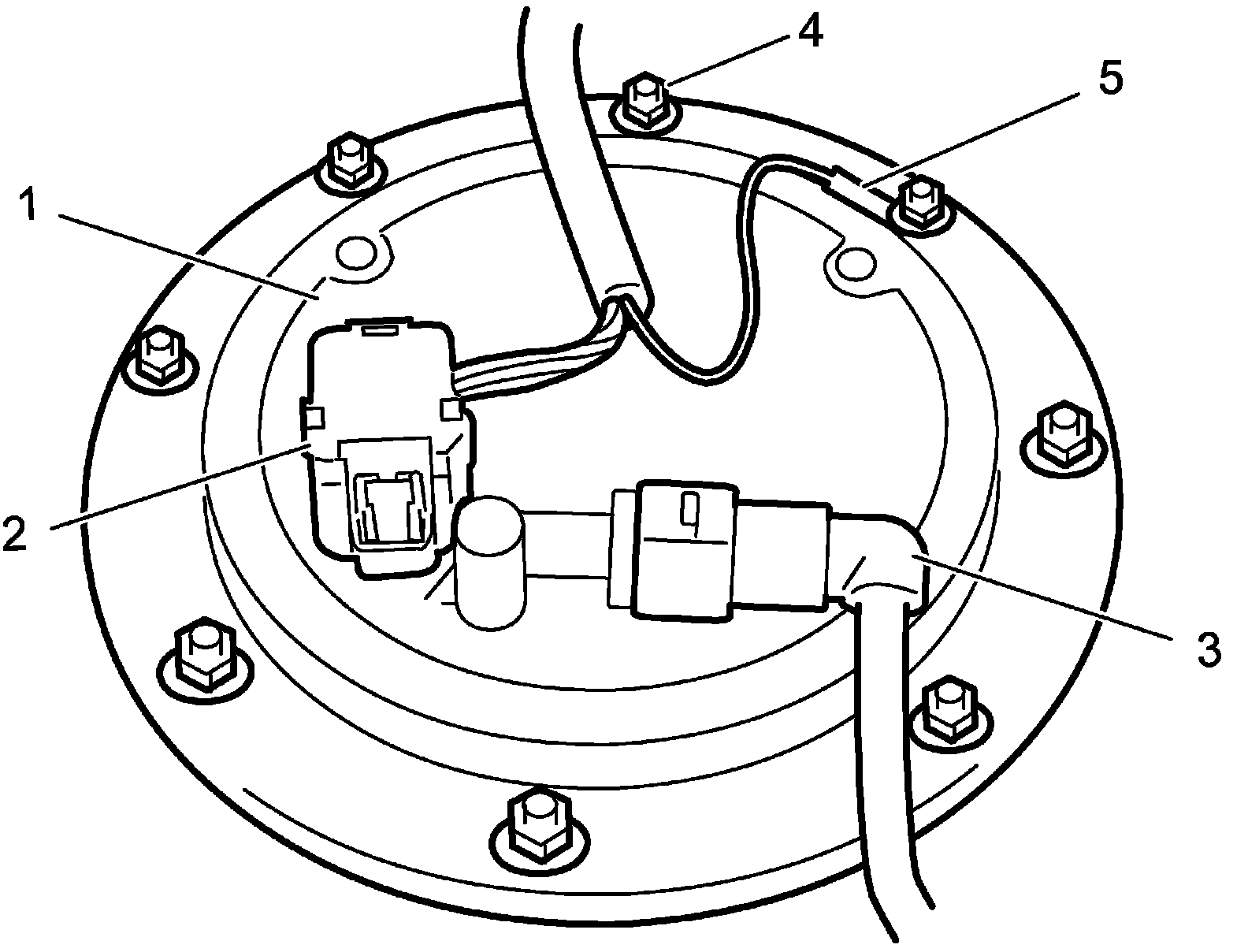 2. Disconnect fuel pump/fuel level sensor connector (2) from fuel pump assembly (1).