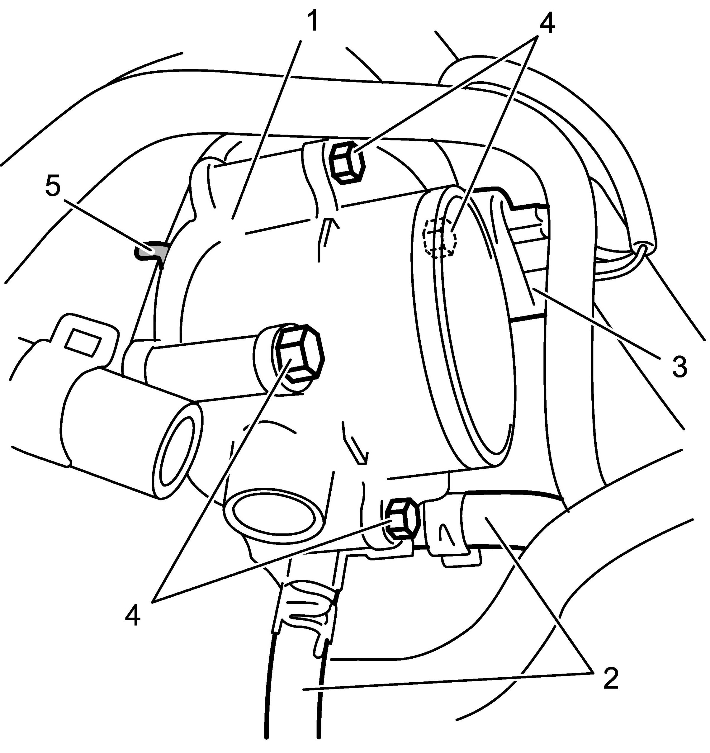 5) Remove throttle body bolts (4), and then remove throttle body assembly and gasket (5) from intake manifold.