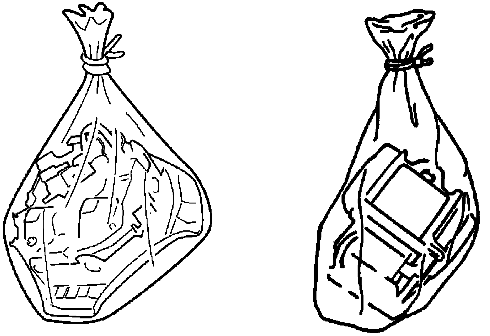 - When disposing of deployed air bag (inflator) module and activated seat belt pretensioner, be sure to seal it in a vinyl bag.