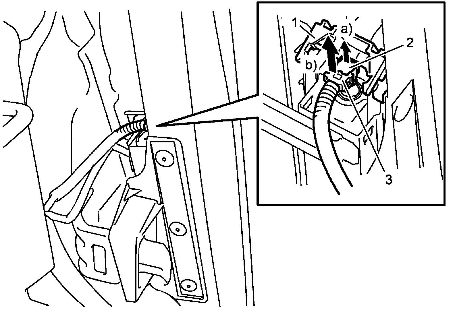 b Disconnect connector with lock released.