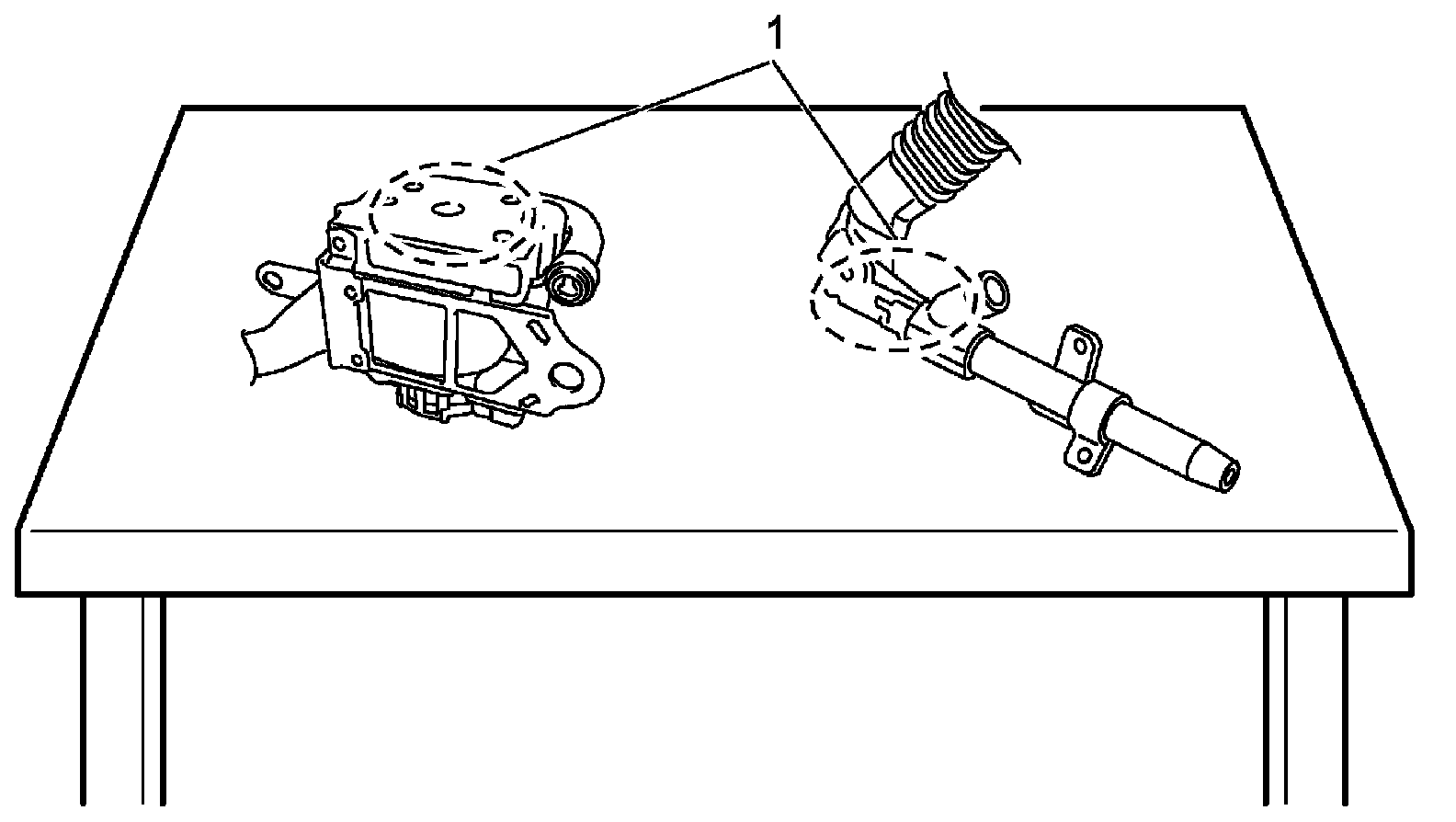 - When placing a live seat belt pretensioner and a live lap pretensioner on a workbench or other surface, do not lay it with its exhaust hole side (1) facing down. Never place anything above the exhaust hole not stack seat belt pretensioners.