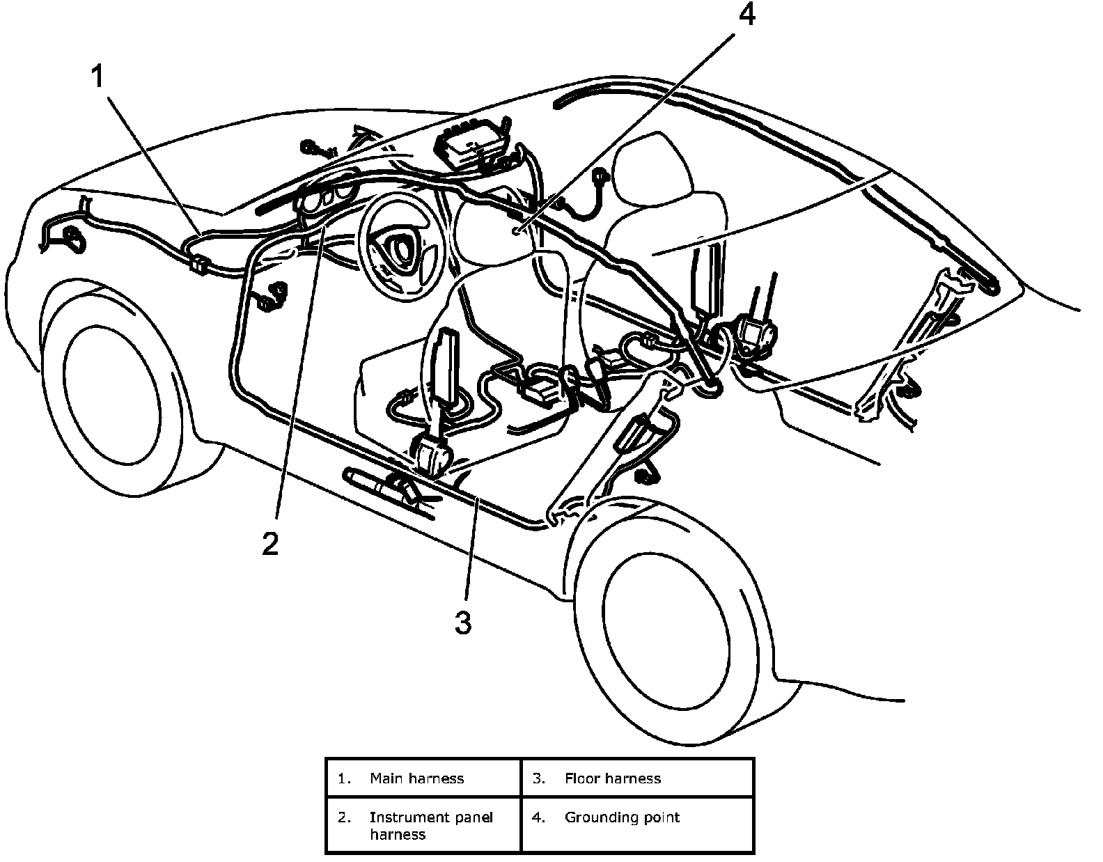 - Air bag wire harnesses (in main harness, instrument panel harness and floor harness), passenger air bag harness and seat harness.