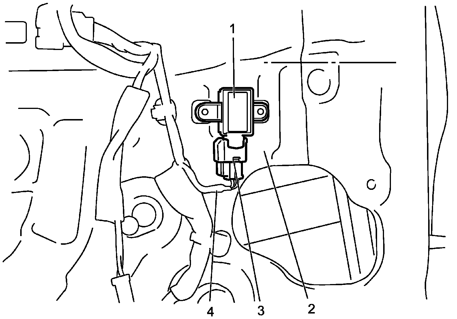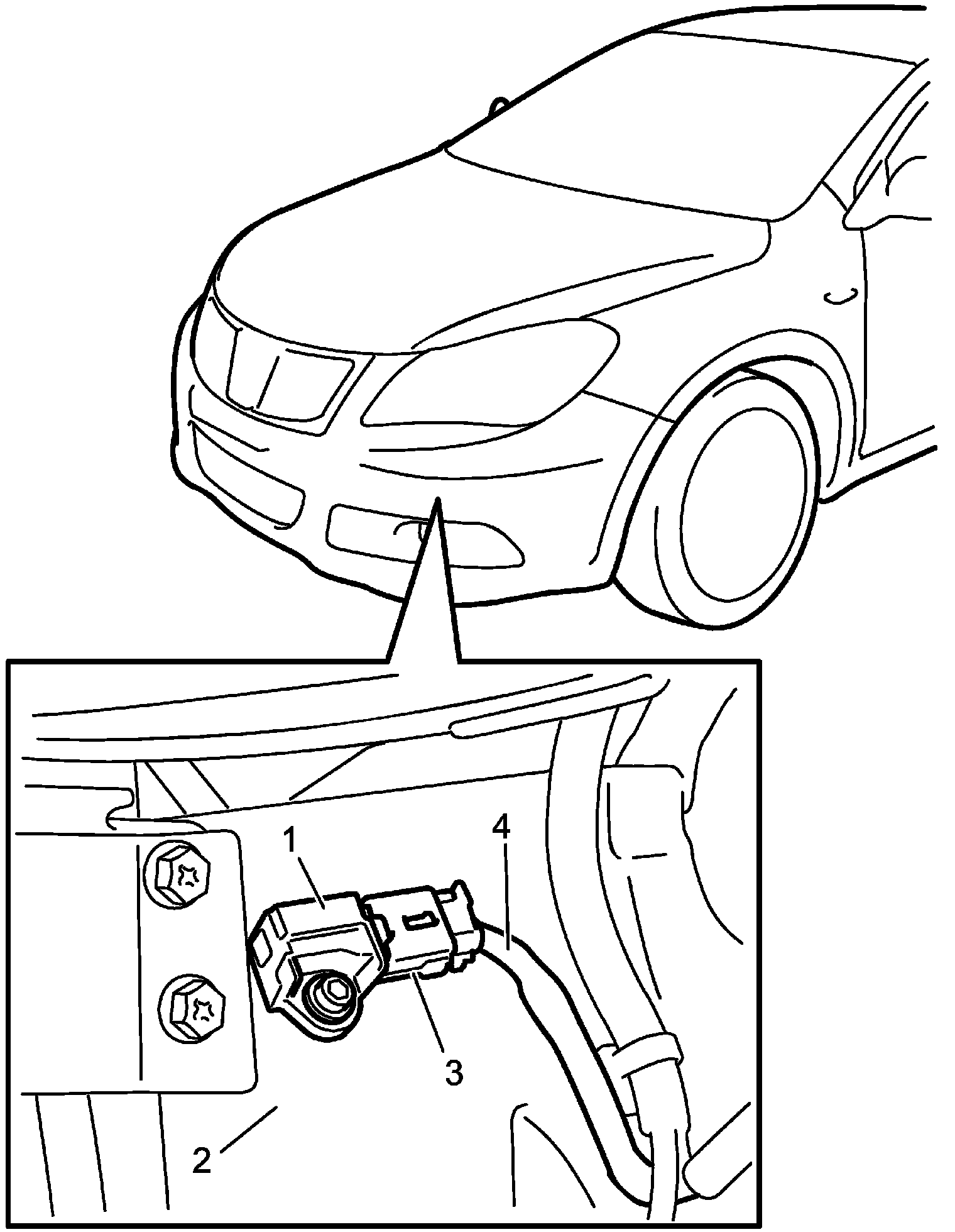 - Check connector (3) and lead wire (4) of forward impact sensor for scorch, melt and damage.