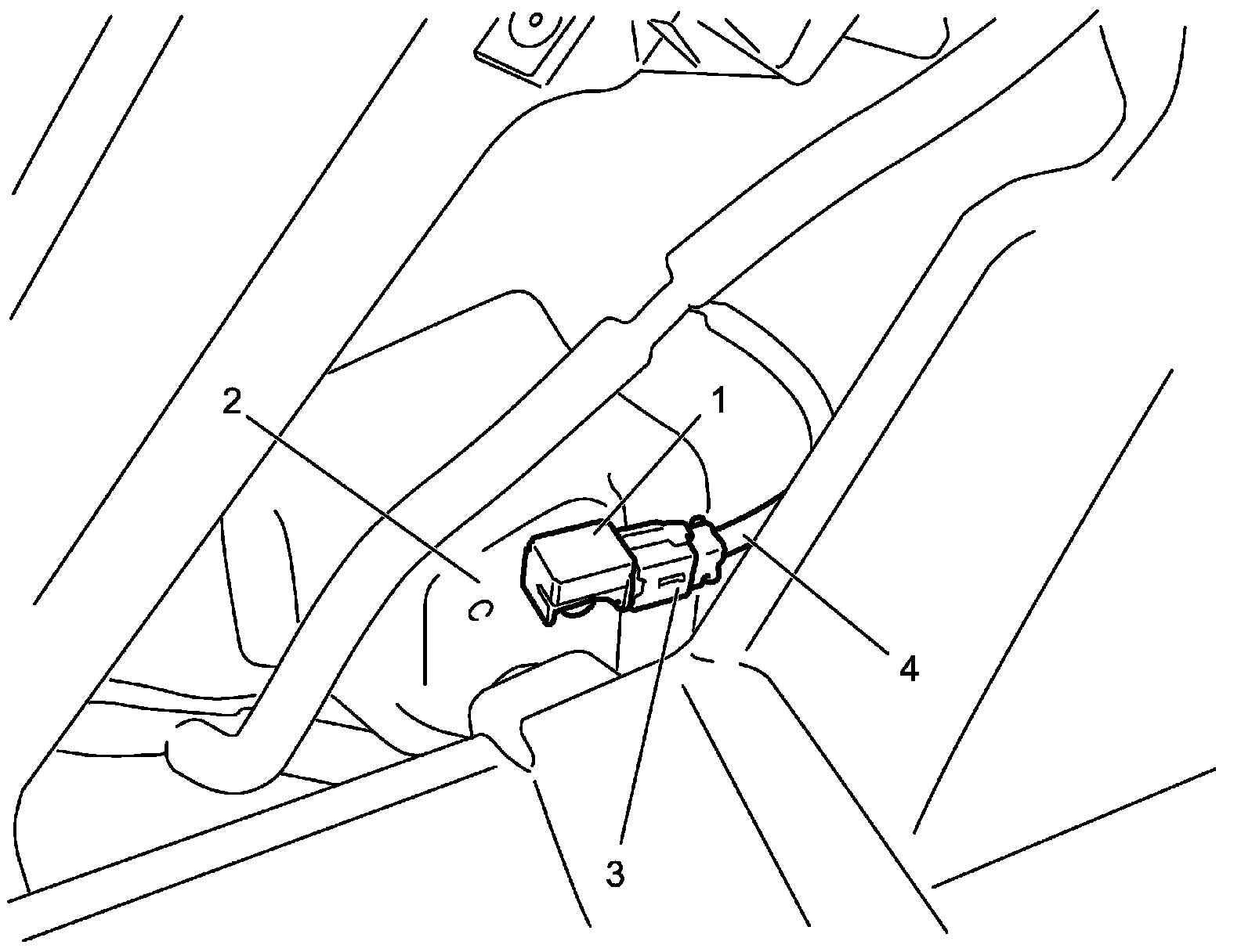 - Check sensor (1) and quarter panel inner (2) for dents, cracks, deformation and rust.