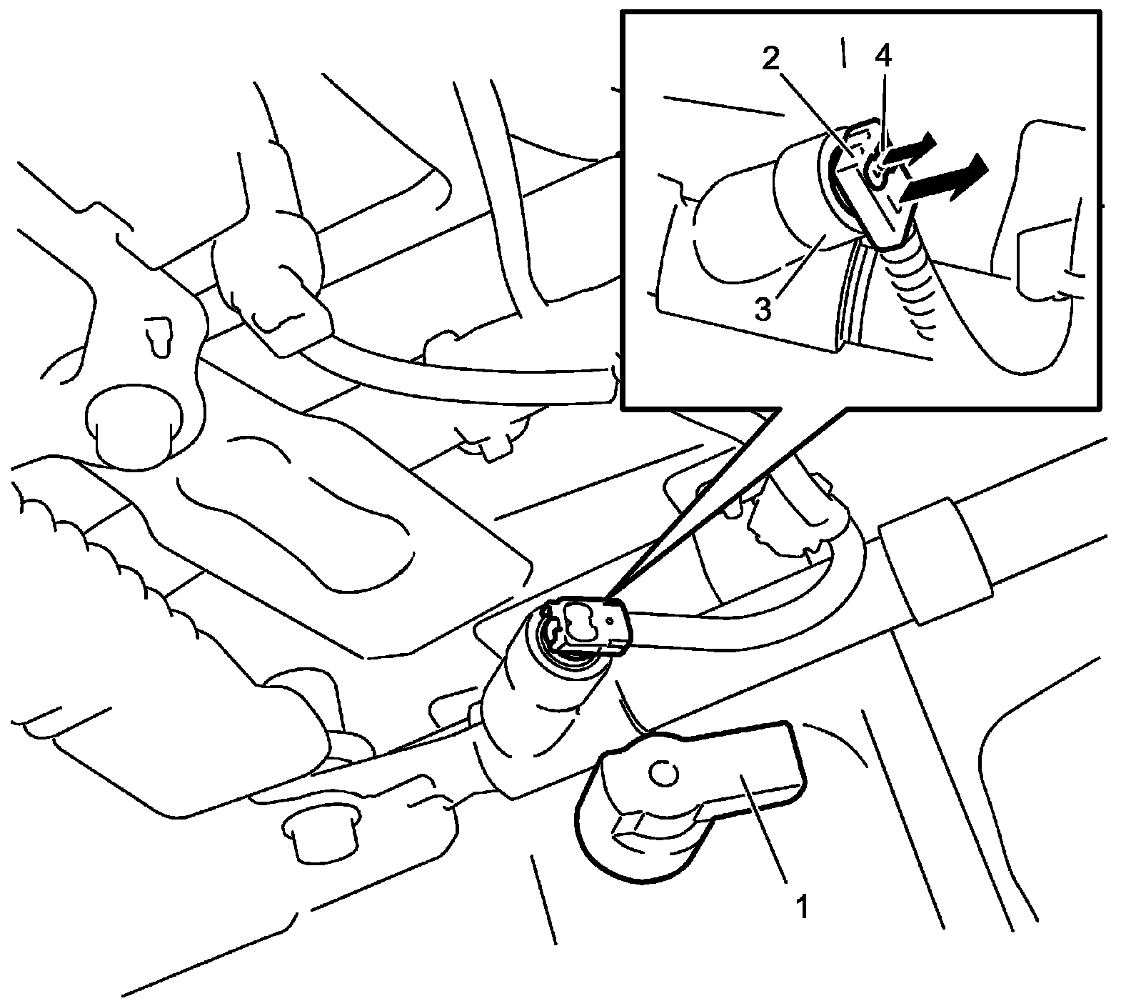 - Connect connector (2) to retractor pretensioner (1) as follows.
