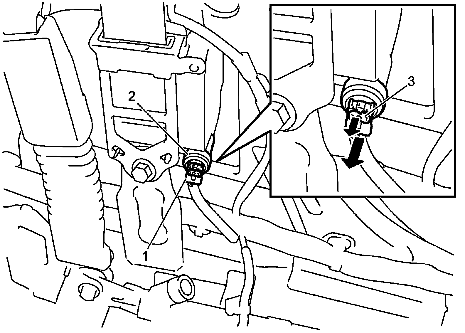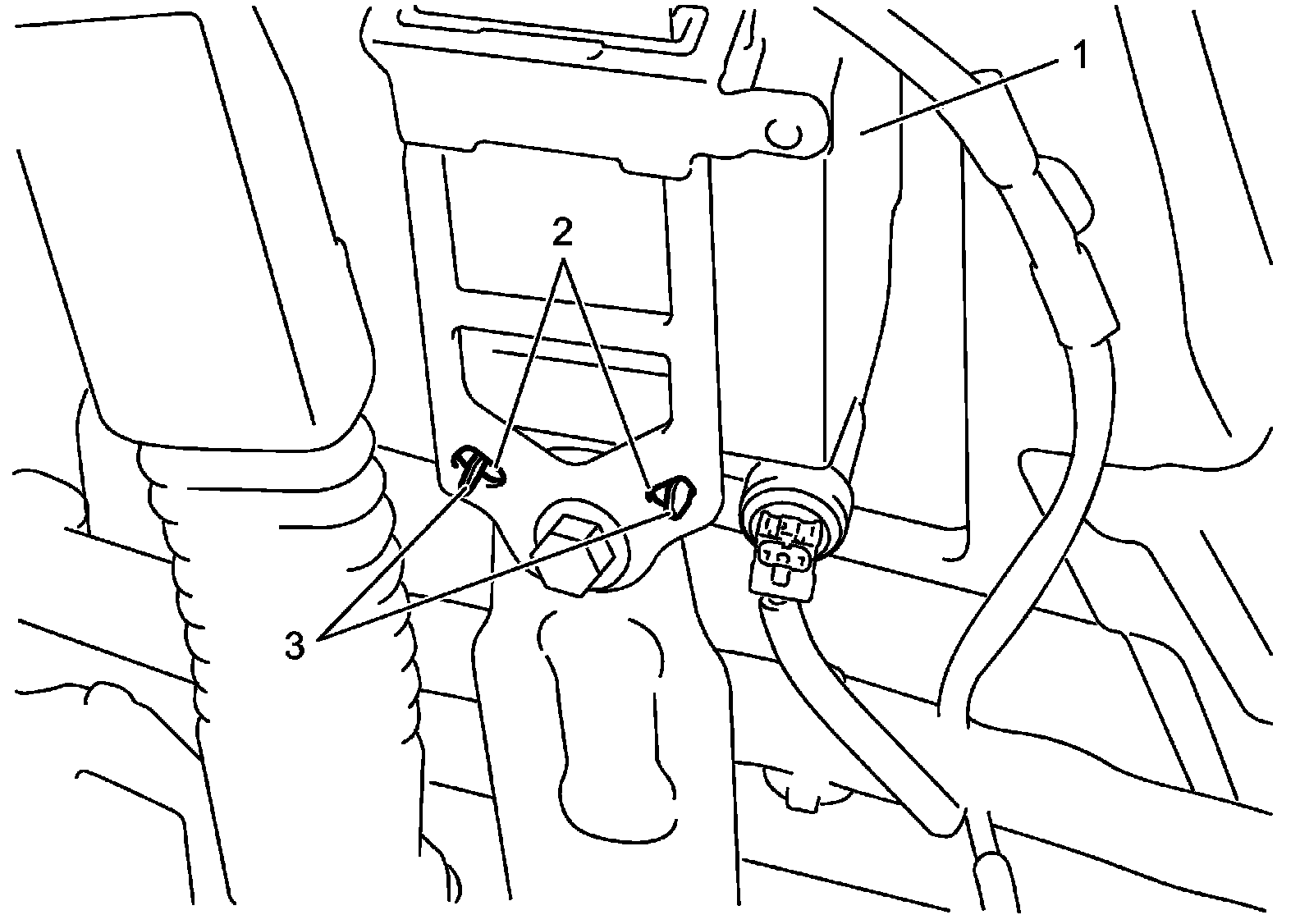 - Check that pins (3) on body are inserted in long holes (2) on retractor pretensioner (1).