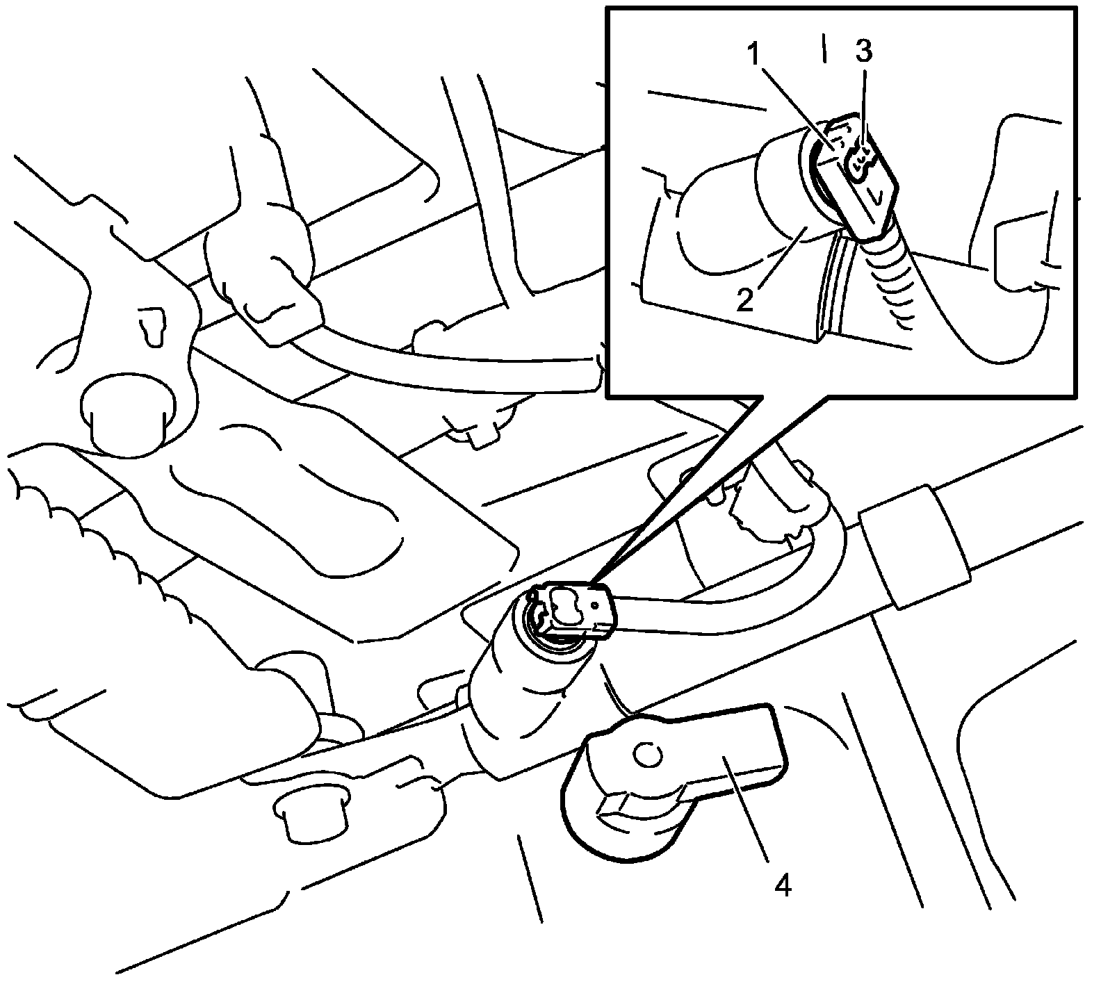 - Connect connector (1) to lap pretensioner (2) as follows.