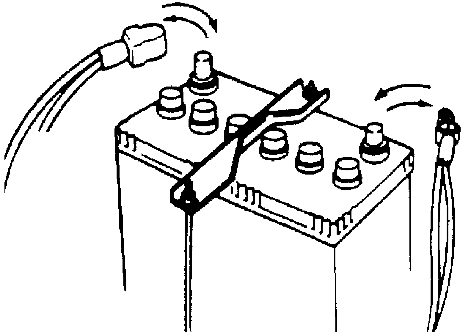 - When removing the battery, be sure to disconnect the negative (-) cable first and then the (+) positive cable. When reconnecting the battery, connect the positive (+) cable first and then the negative (-) cable. Reinstall the terminal cover.