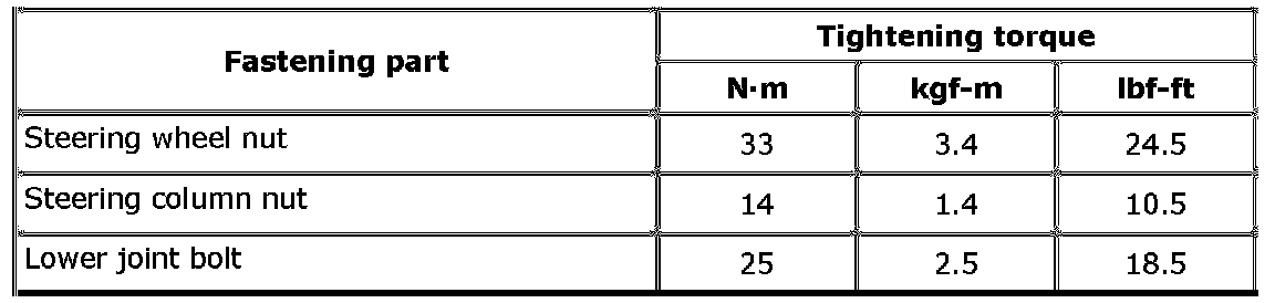 For the tightening torque of fastener not specified in this section, refer to Fasteners Information.