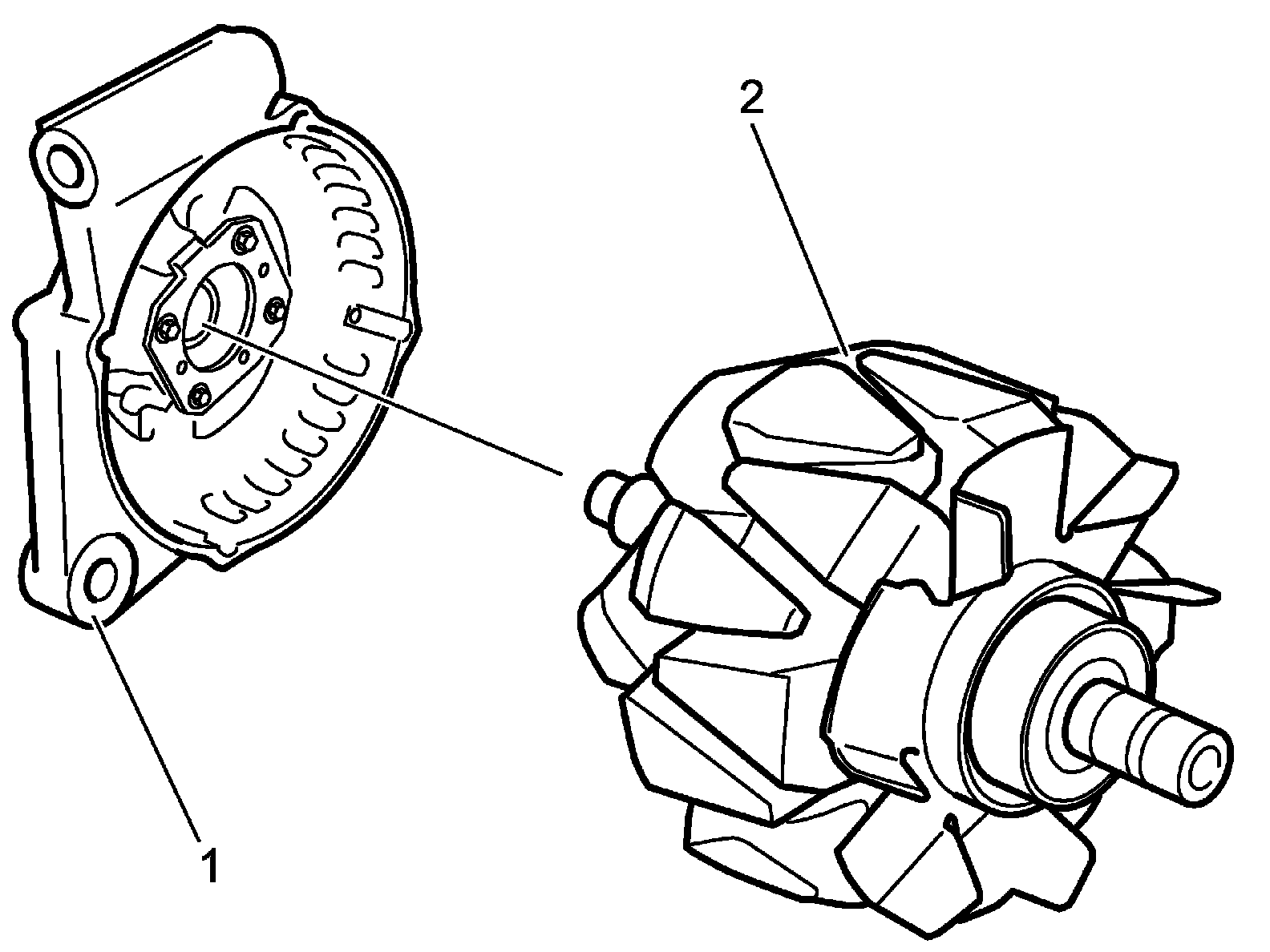 3. Install rotor (1) to drive end frame (2)