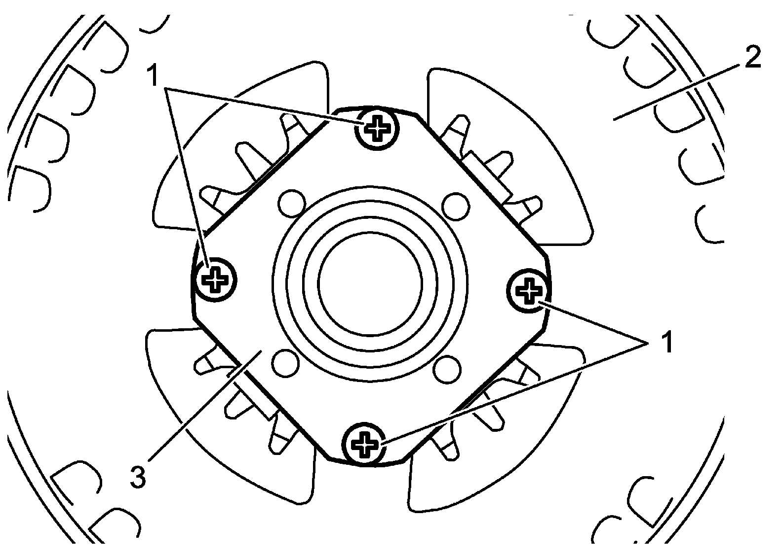 5. Loosen stator assembly bolts (4).