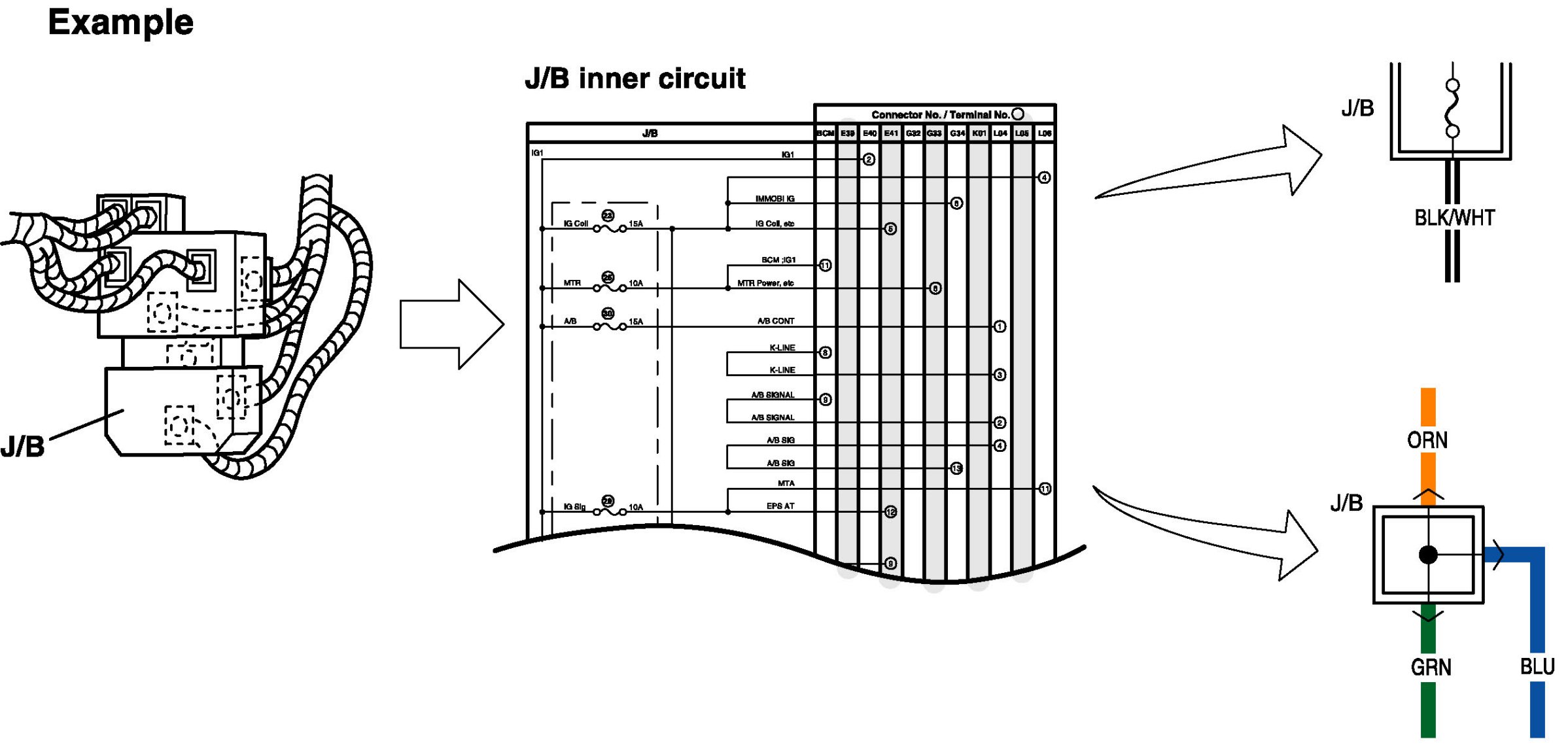 - The joint connector (J/C) connects several different wires with the same wire color at one place instead of connecting them by welding or caulking one by one. It is not an ordinary connector but a part of the continuous wire in the harness.