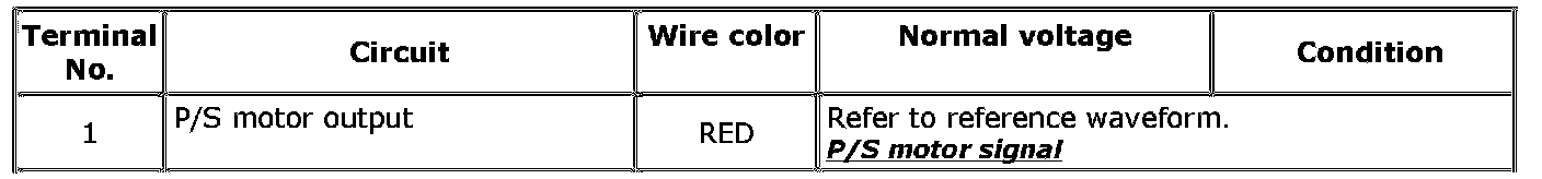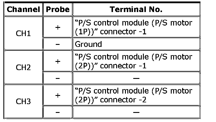 4) Connect connector to P/S control module and measure voltage at each terminal.