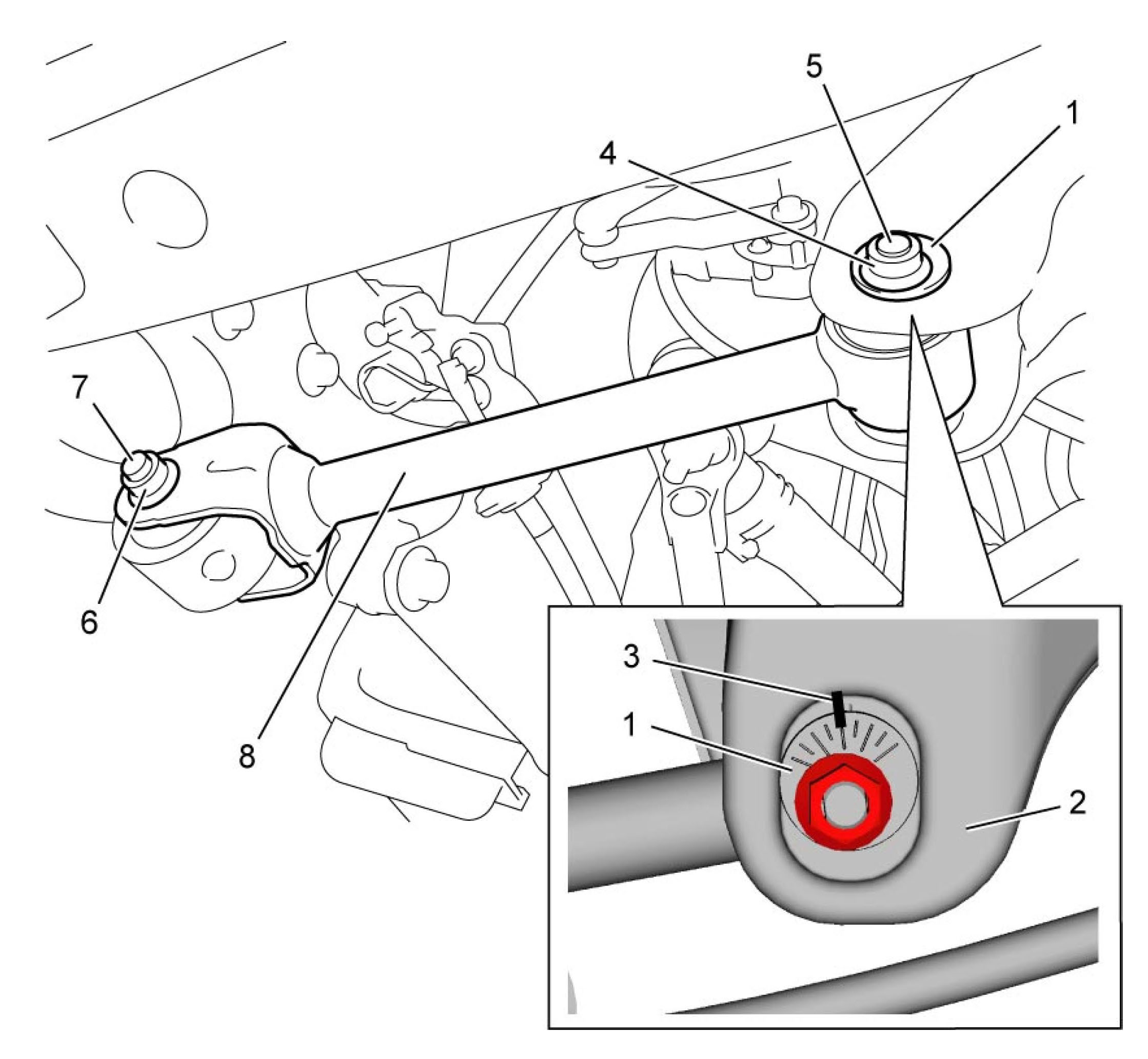 3) Put matchmark (3) across adjustment washer (1) and rear suspension frame (2).