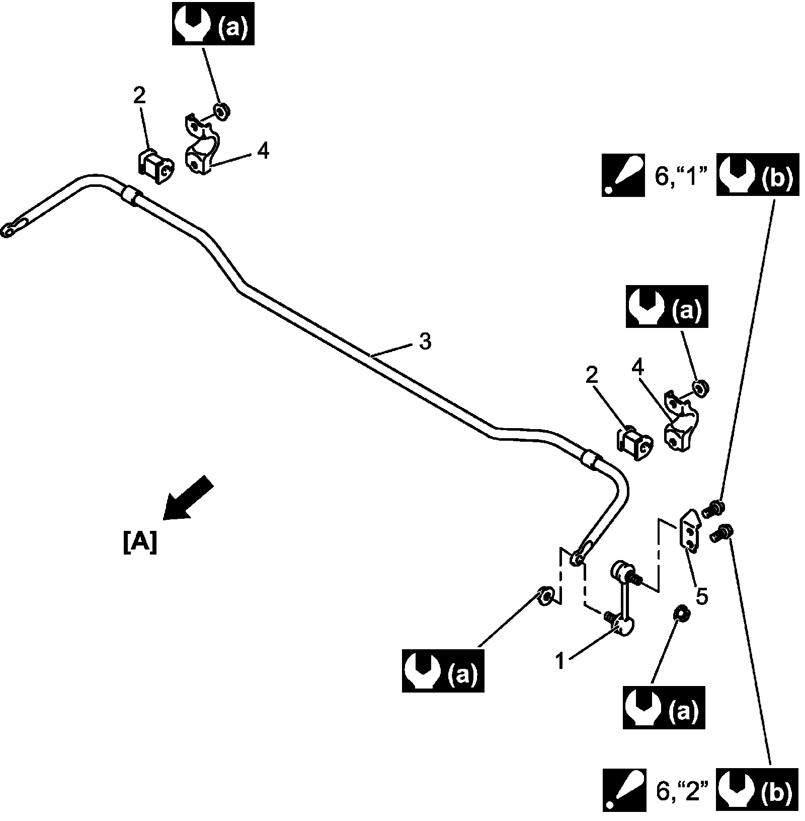 ^ Do not damage ball stud boots of rear stabilizer ball joints.
