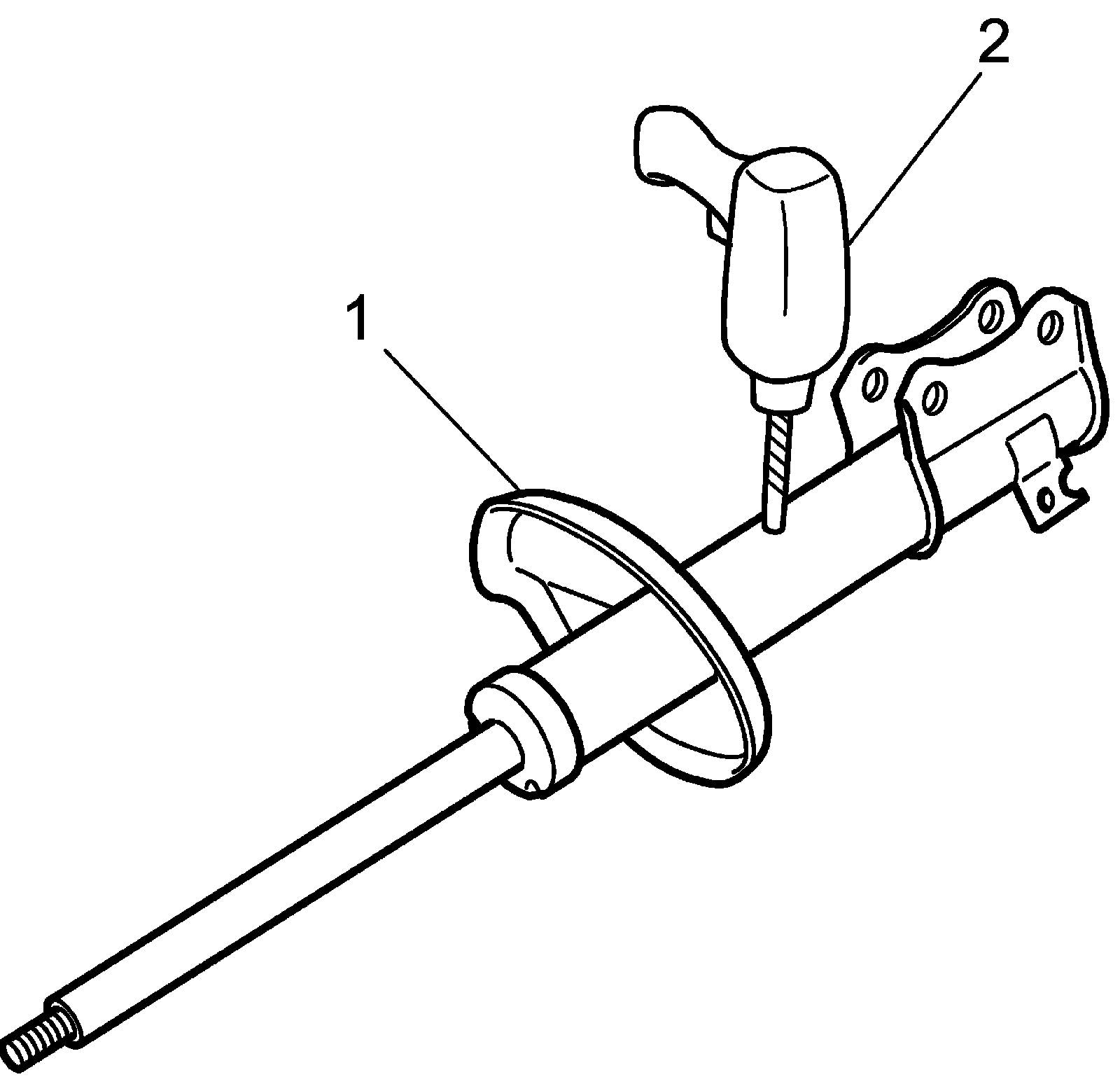 ^ Before disposing of the assembly, be sure to drill a hole (approximately 3 mm (0.1 in.) in diameter) (2) in it at location shown in figure to let low-pressure gas and oil out. Be sure to wear eye shield since low-pressure gas discharged may be accompanied by drill swarf although the gas is harmless.