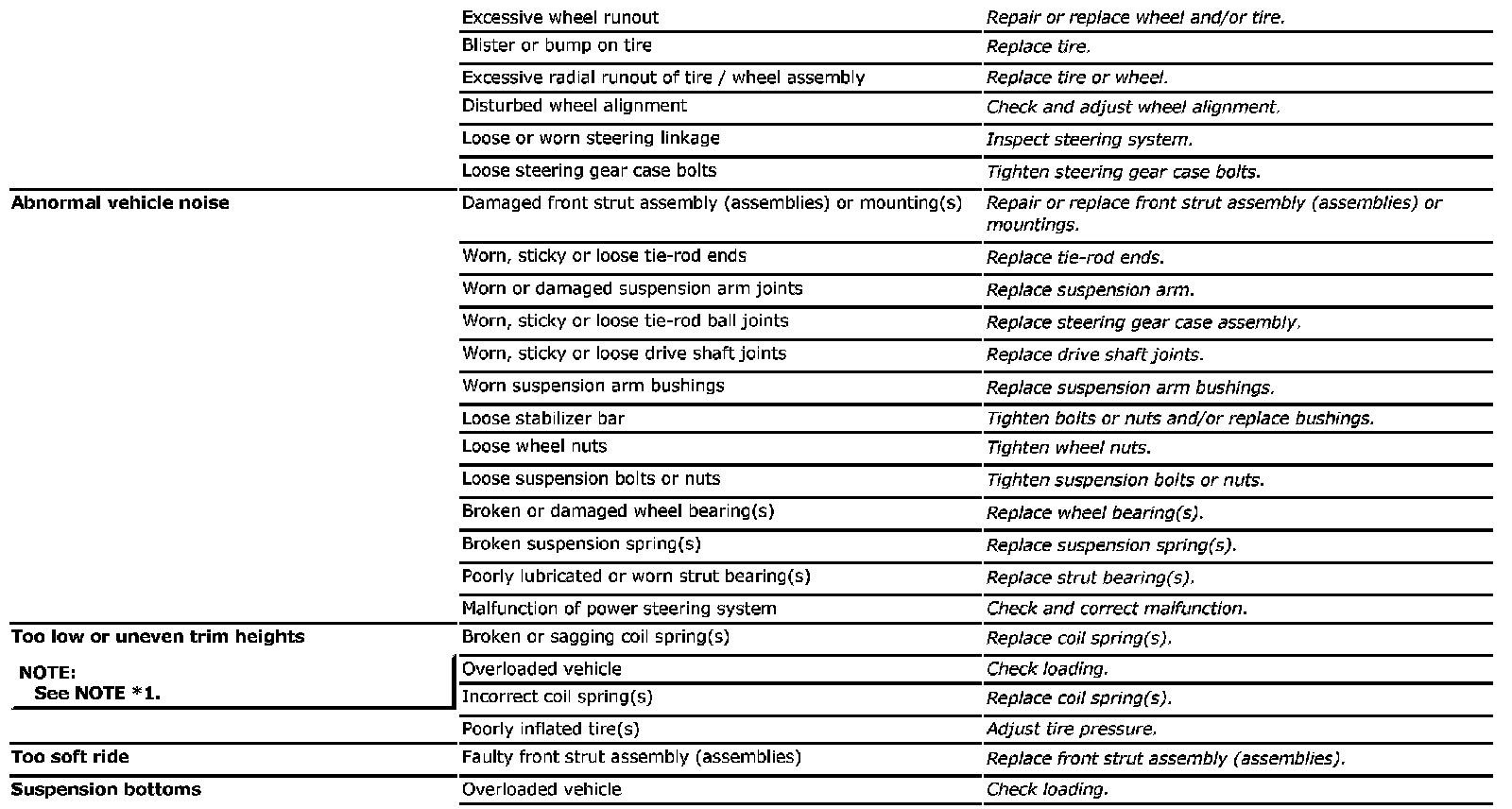 *1: Right-to-left trim height ("H") difference should be within 15 mm (0.6 in.) at curb weight. (This applies to both front and rear axles.)