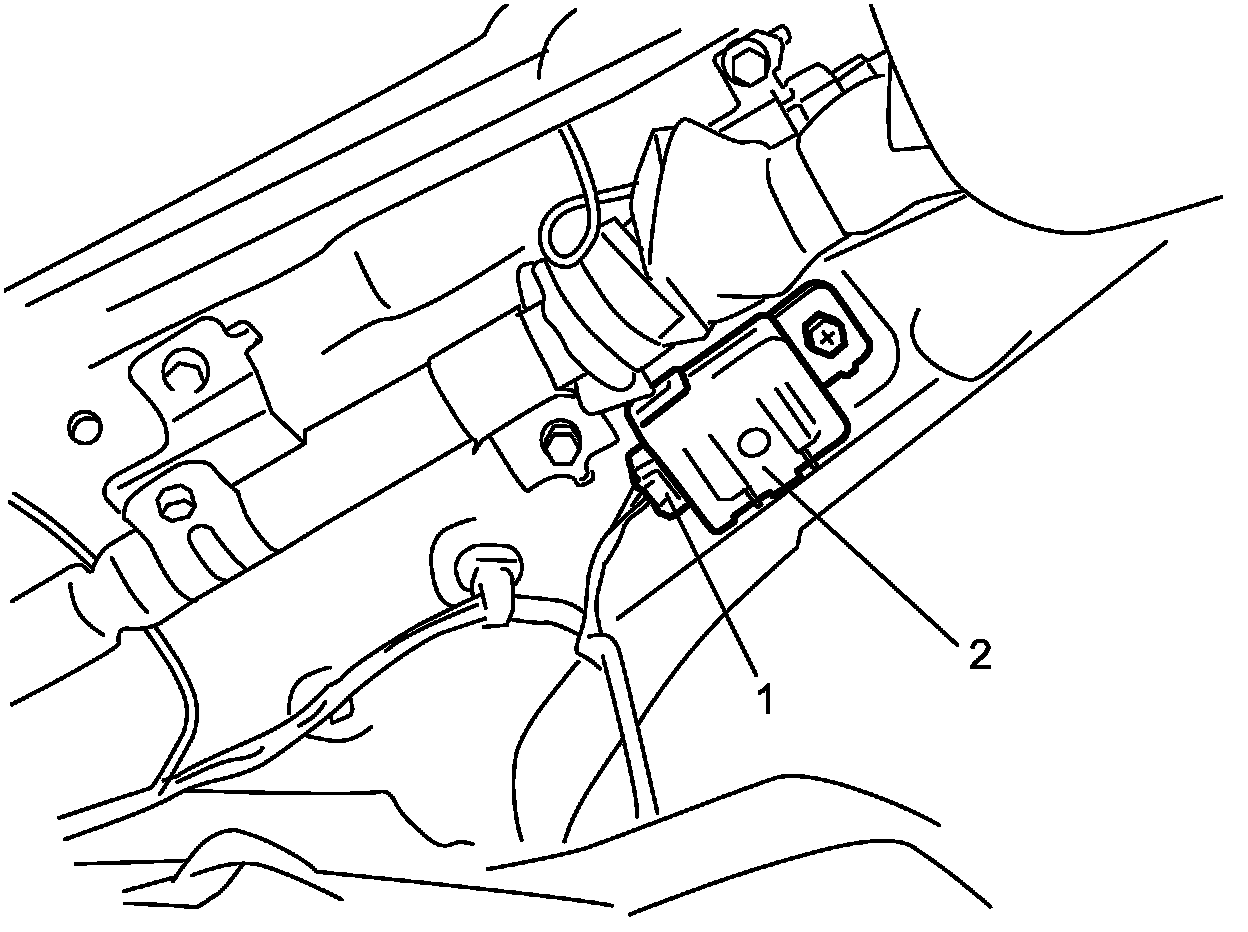 3. Disconnect connector (1), and then remove keyless entry / TPMS receiver (2)