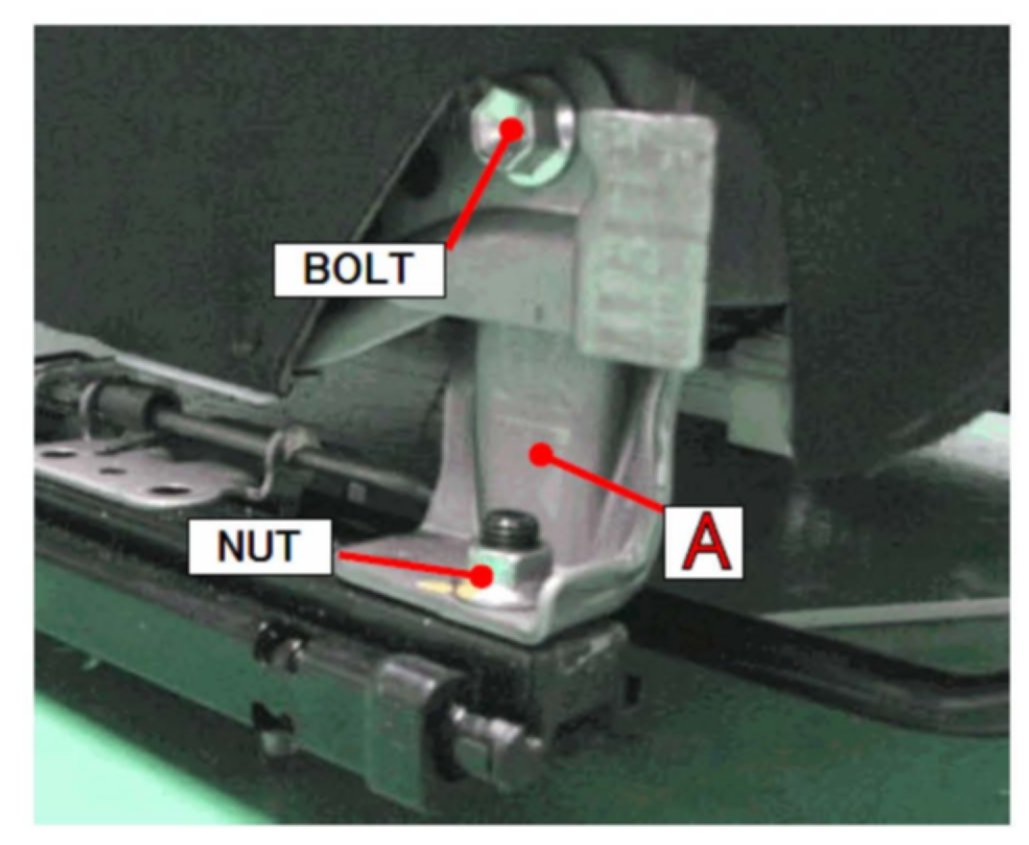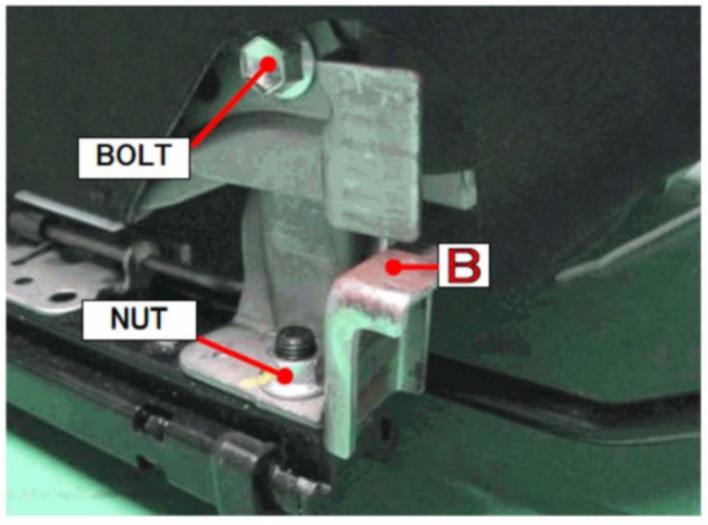 3. Attach new countermeasure Bracket "B" then fasten re-using the Bolt and Nut.