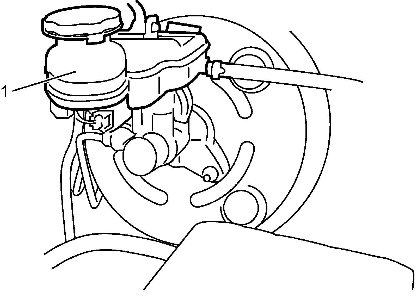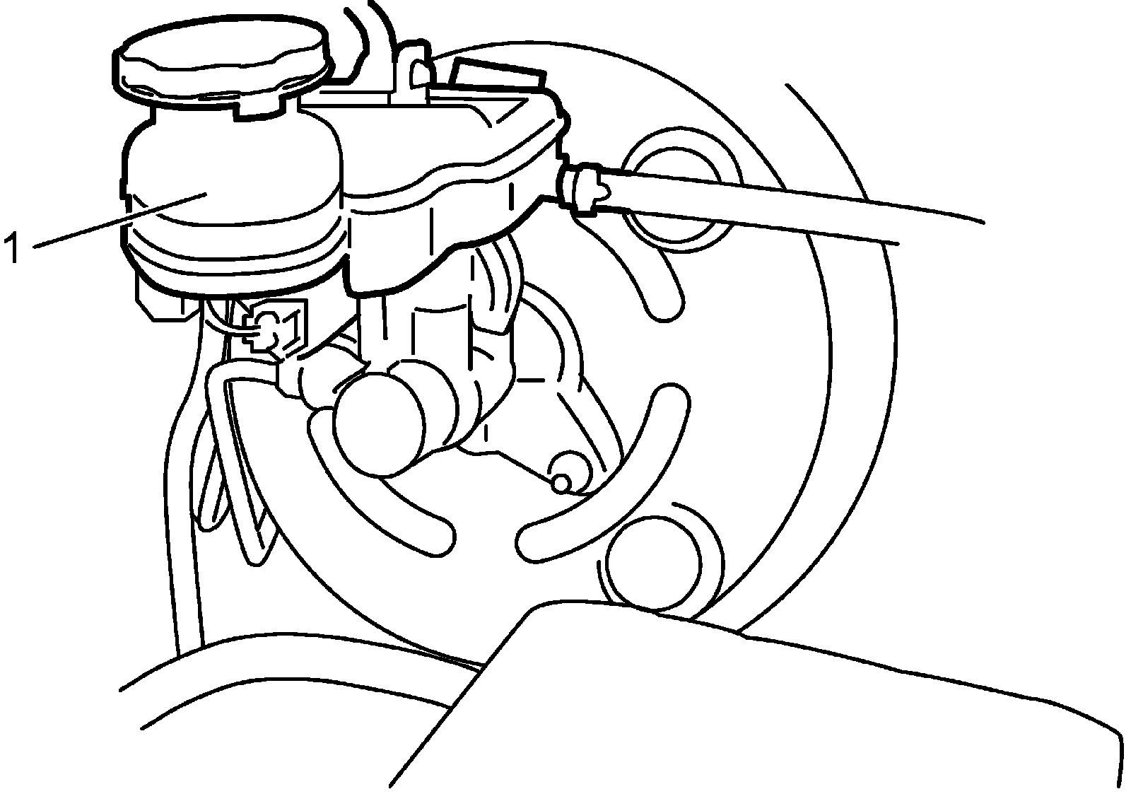9) Refill master cylinder reservoir (1) with fluid up to specified level.