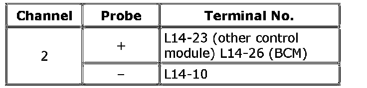 ^ As each terminal voltage is affected by battery voltage, confirm that it is 11 V or more when ignition mode of keyless push start system is in "ON".