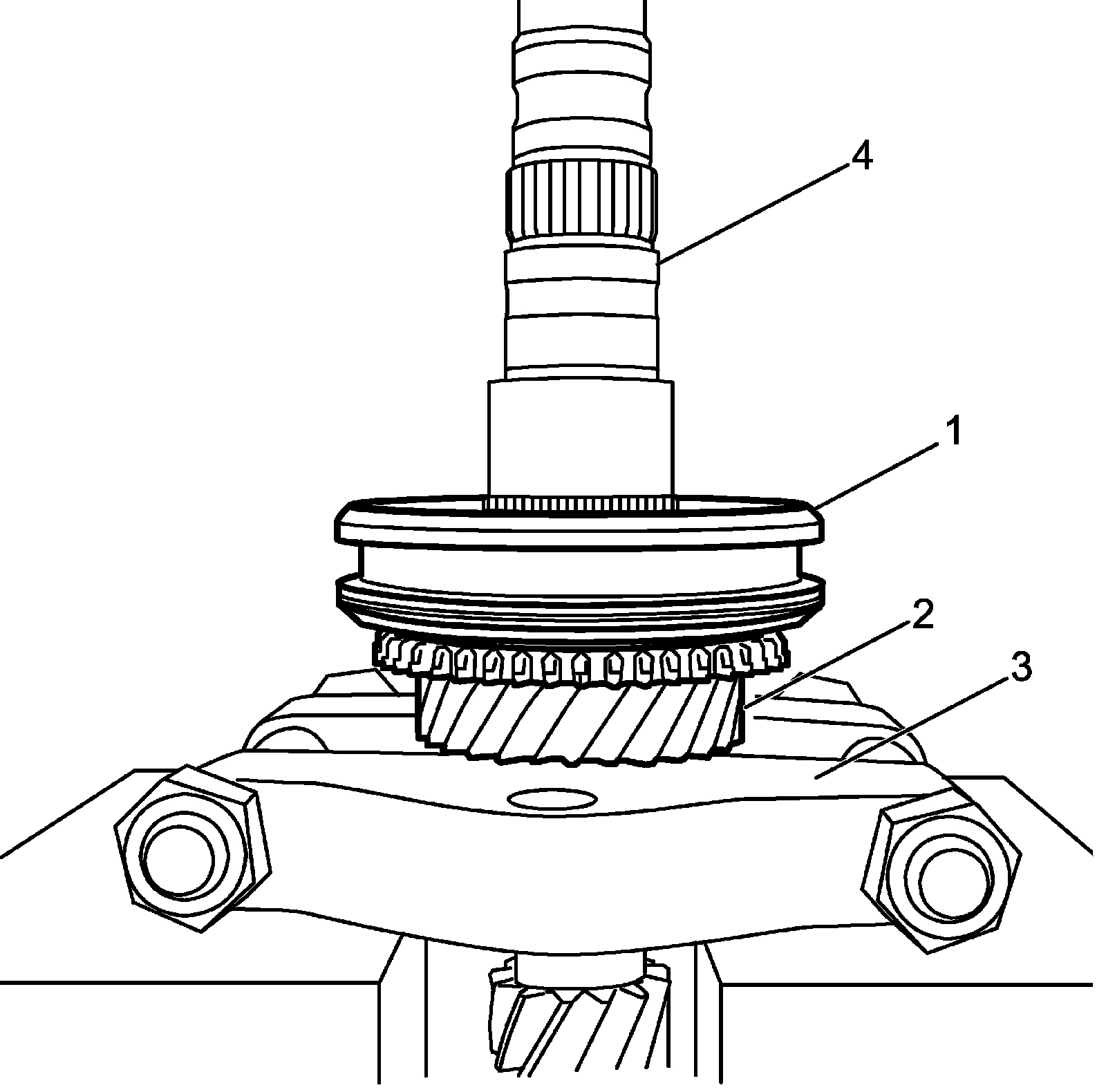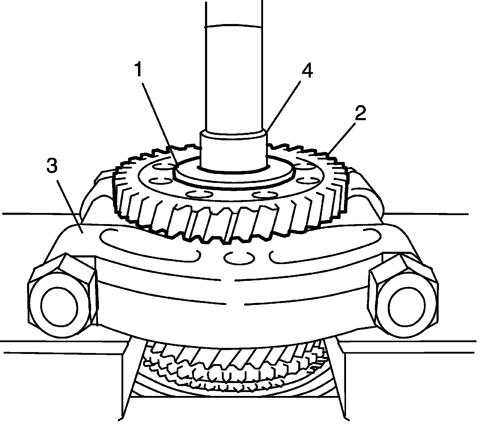 11) Install 6th gear spacer (4) using special tool and hydraulic press.