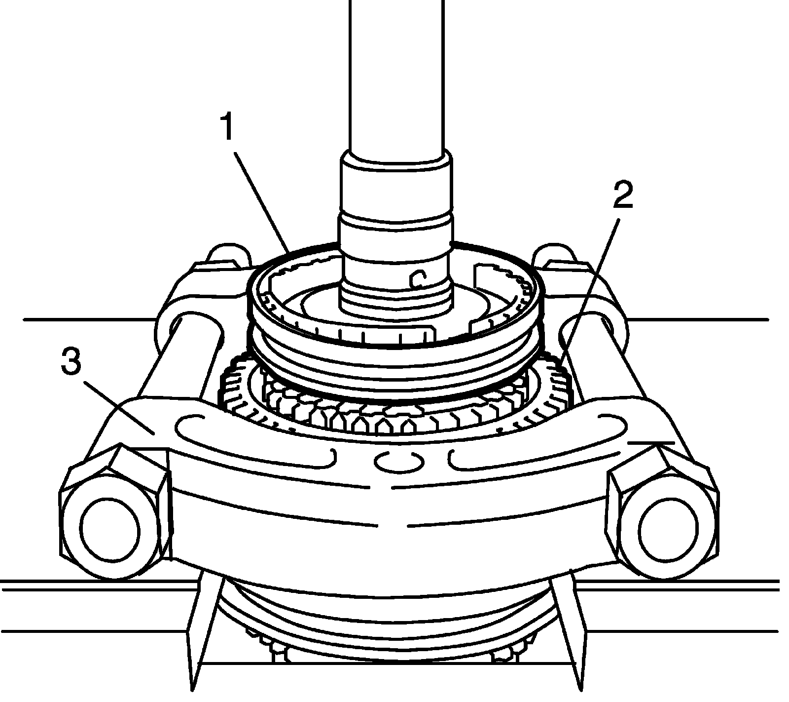 2) Fit high speed synchronizer sleeve (1) to hub (2) and 3 keys (3) as shown in figure.