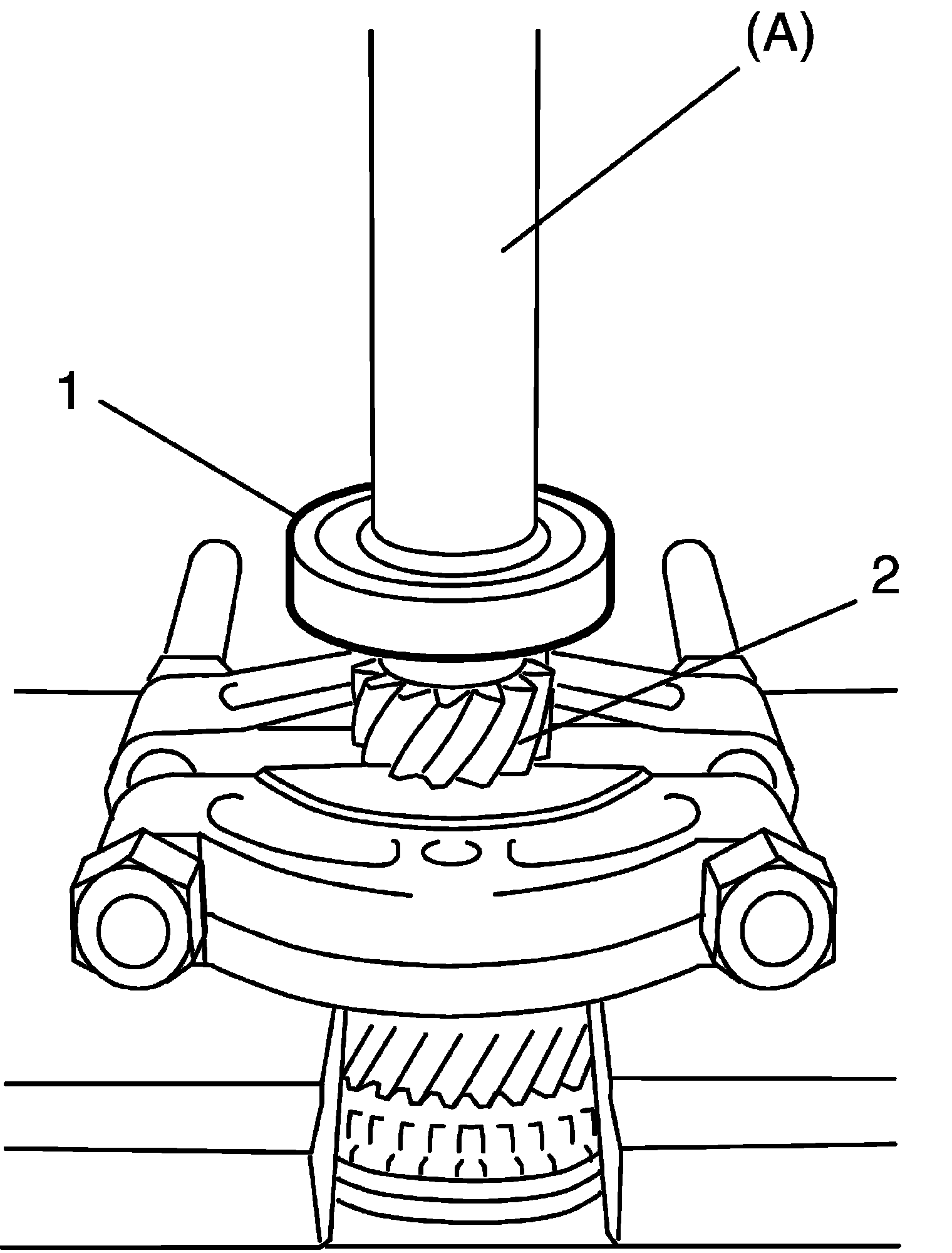 1) Install right bearing (1) to input shaft (2) using special tool and hydraulic press.