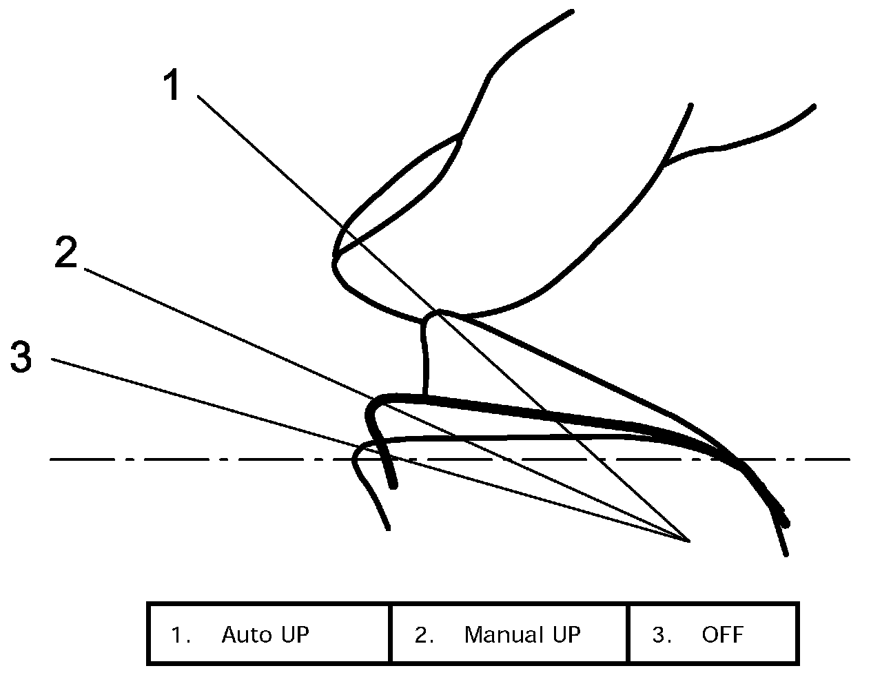 4. Pull up and hold power window switch in AUTO position until window glass reaches its fully closed position and continue holding it up for about 2 seconds.