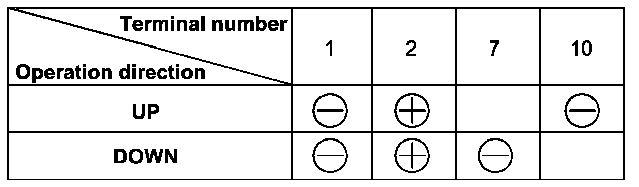 2. Connect terminal "7" (DOWN) or terminal "10" (UP) to battery negative terminal and disconnect it immediately.