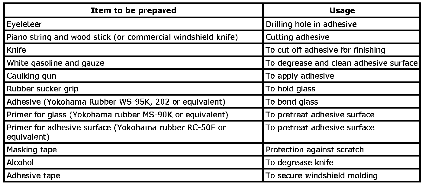 11. Check for water leakage 1 or 2 hours after installing windshield. If leakage is found, remove and install windshield again.
