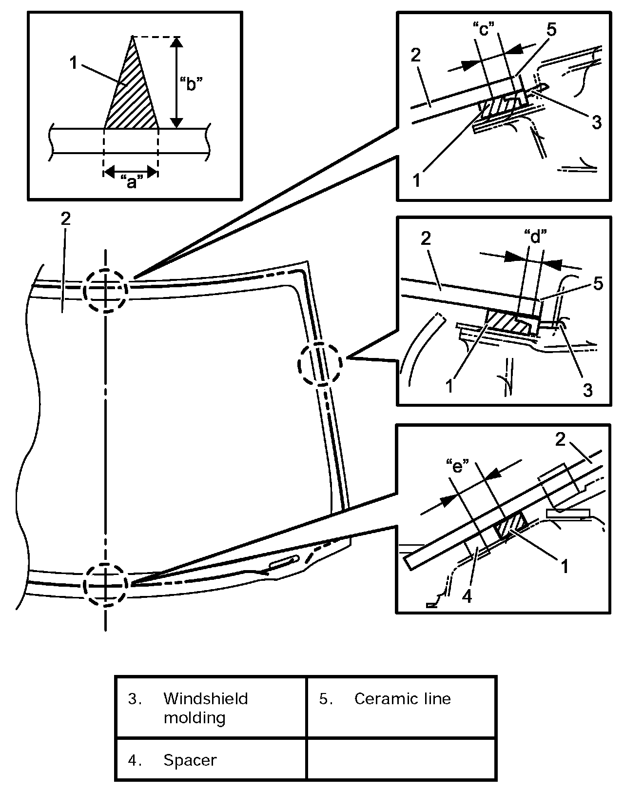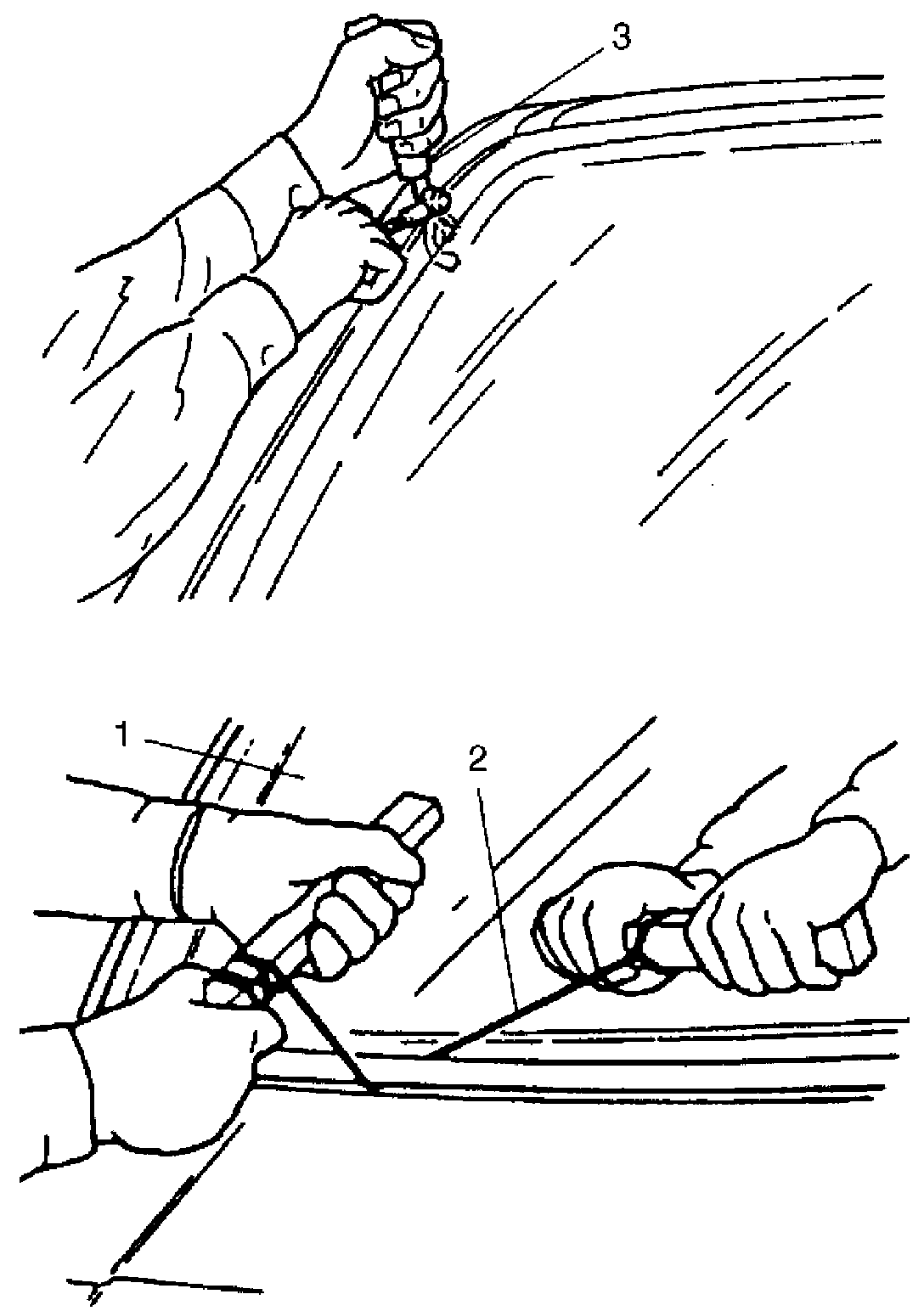 Then put alignment marks (3) on windshield (1) and body (2).