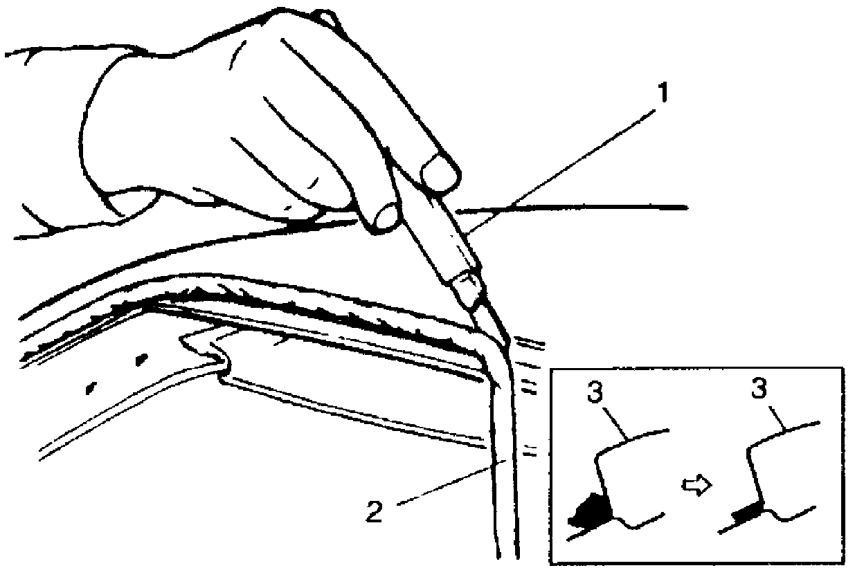 NOTE: Before using knife (1), degrease it with alcohol or the like.