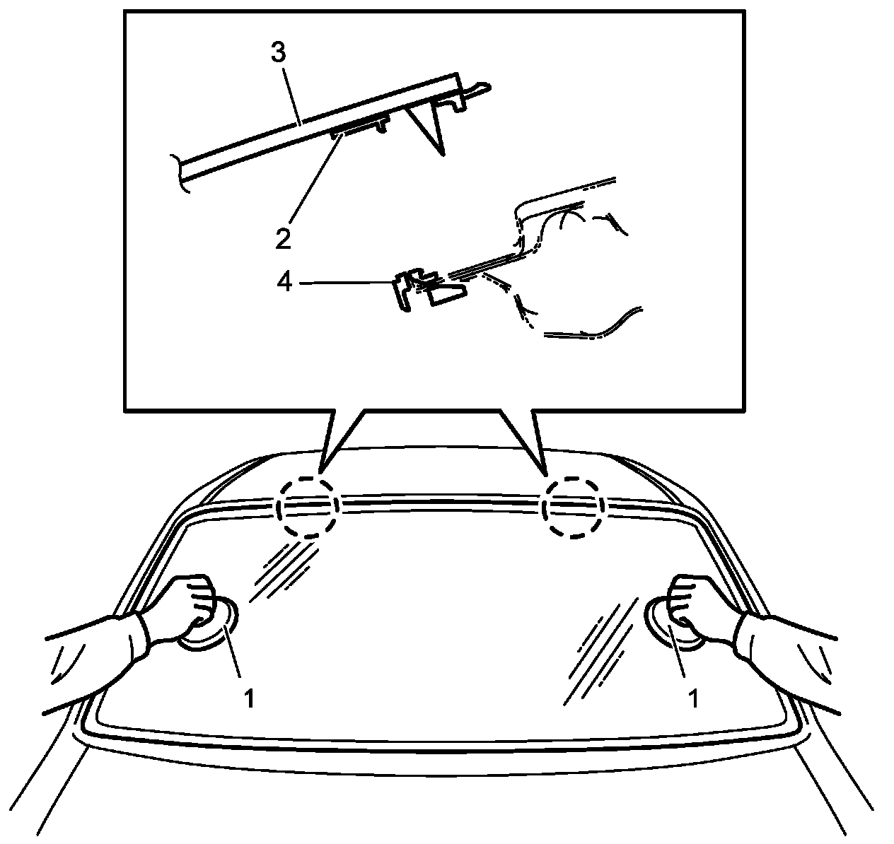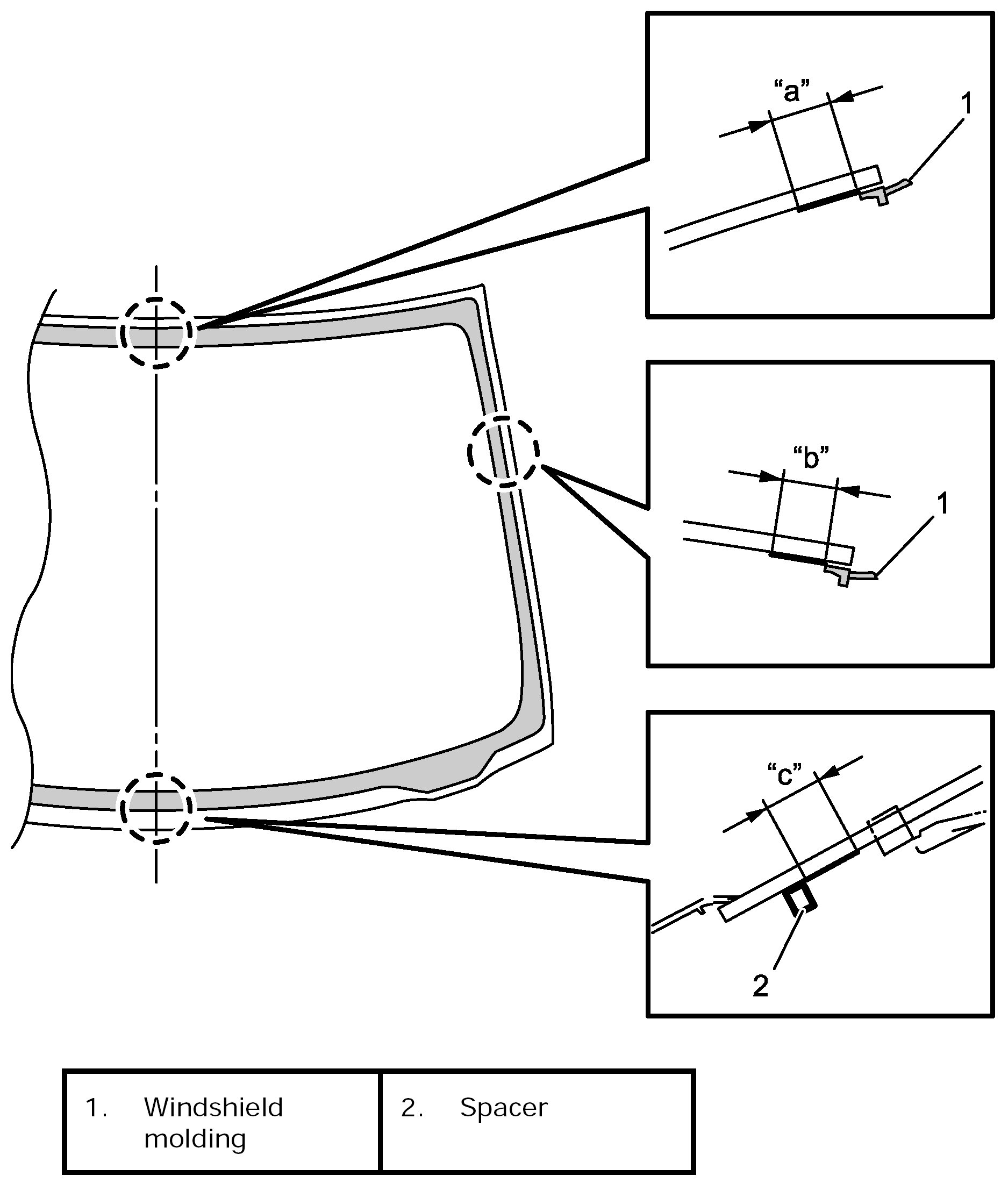 6. Install new spacers (1) to windshield.
