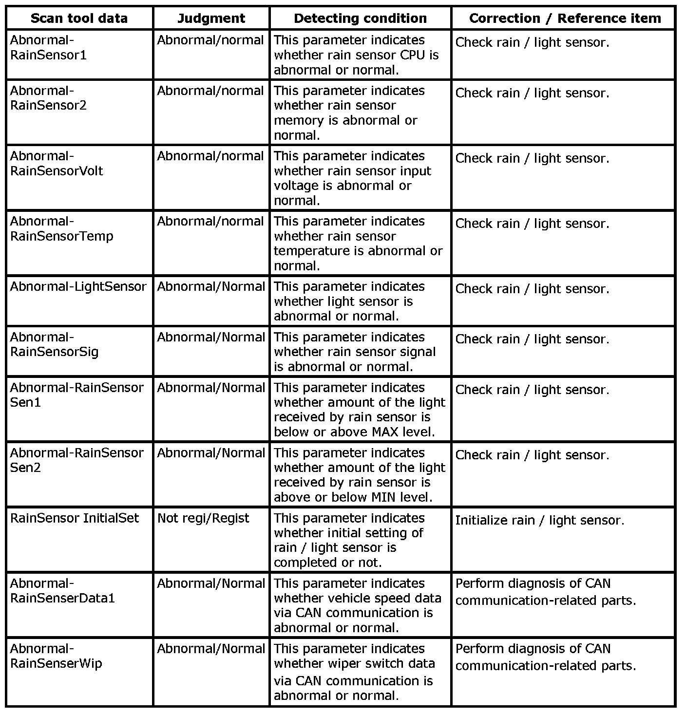 The following table shows items that can be shown with BCM data list of SUZUKI scan tool