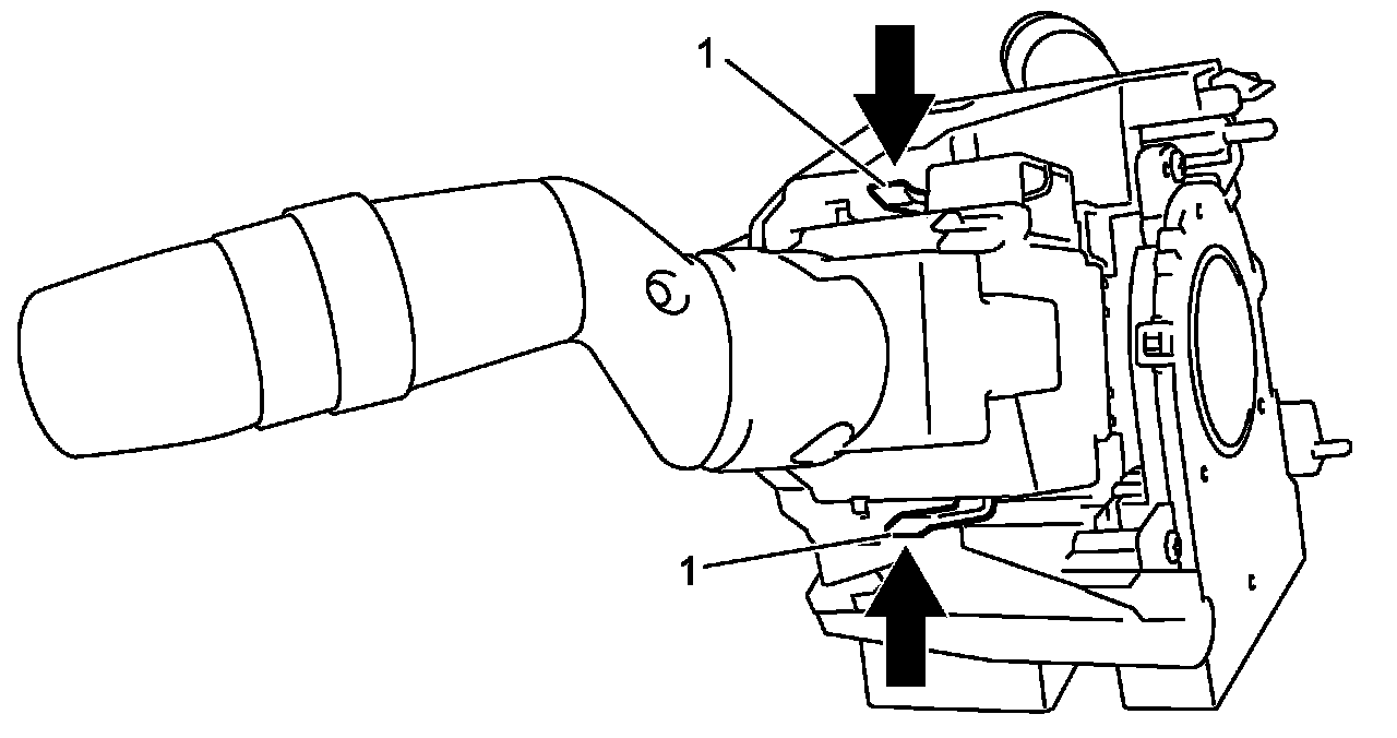 3. Remove wiper and washer switch from steering column while pushing claws (1) in directions of arrows.